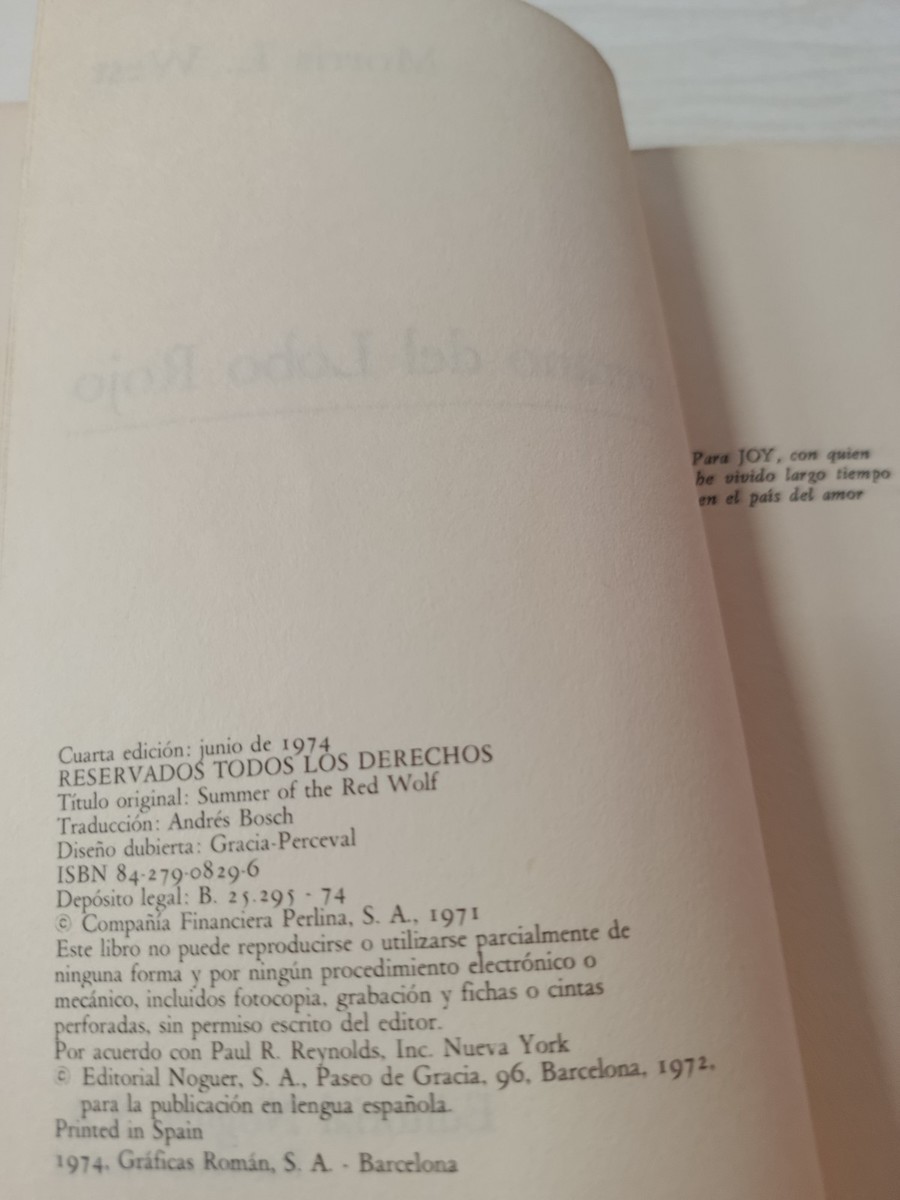 Publie initialement en 1971, El verano del lobo rouge es l'un de romans les plus memorables de Morris West, auteurde succes international. Se deroulant dans les îles Hebrides en Ecosse, la historia suit un ecrivain en crise.que se refugie dansun environnement sauvage et isole, où vous rencontrerez des personnagesque ils changeront leurvida . L'?uvre combine reflexion existentielle, drame humain et force evocatrice de los . L'edition espagnole de Noguer 1971 apporte au lecteur un roman intense et profondement humain.