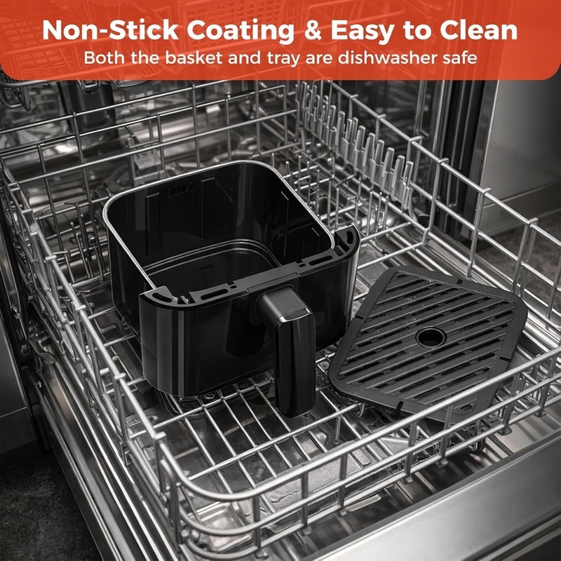 Simple Clean-Up: The compact basket and plate are dishwasher safe for effortless cleanup. The plate features a non-stick surface, allowing you to easily wipe away oil and residue with a gentle rub when hand washing.
