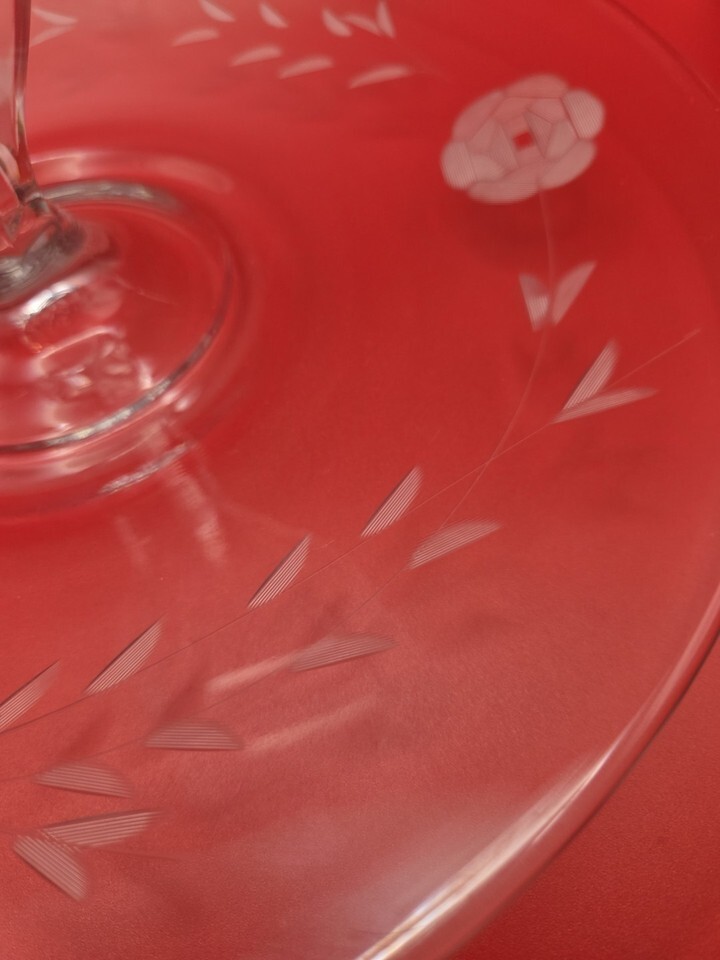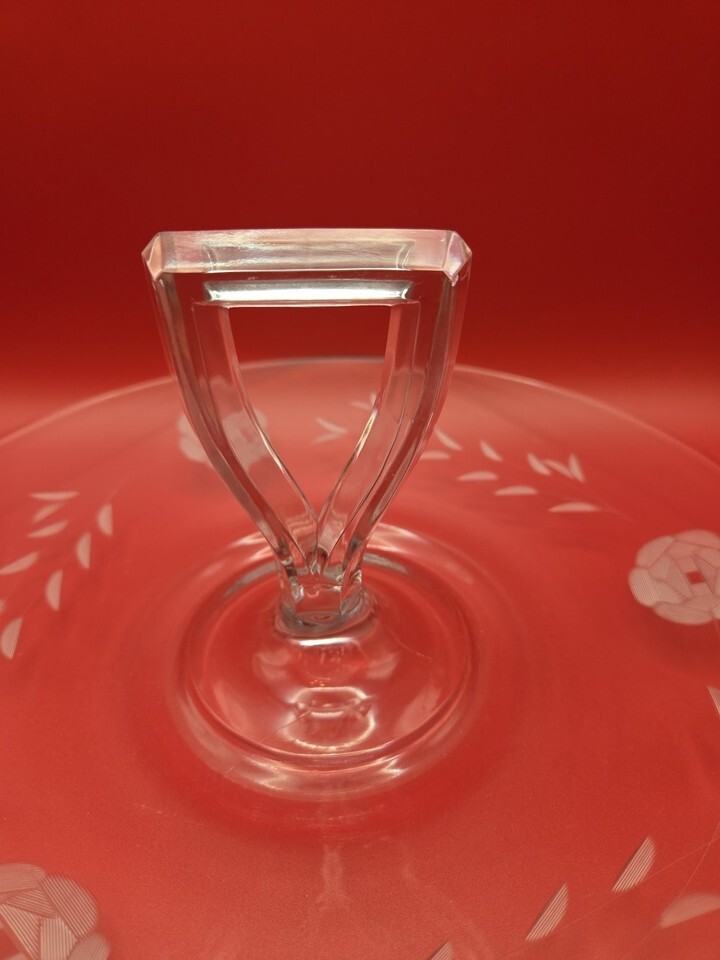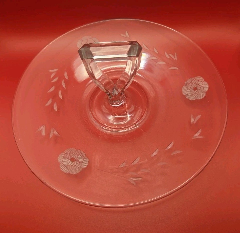 Serving Tray Center Handle Glass Etched Flowers Appetizers Cookies Sandwiches