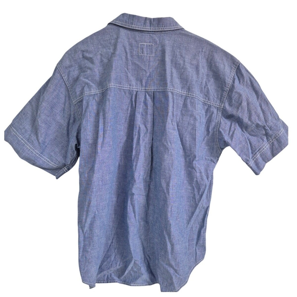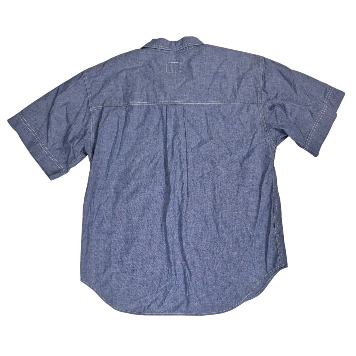 Crisp cotton with roomy cut; slightly boxy fit typical of 80s/90s work shirts.