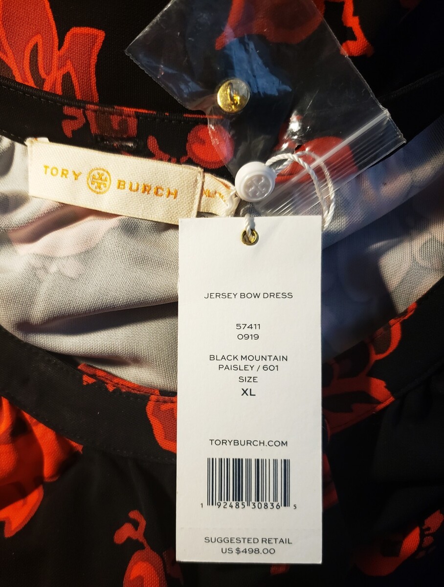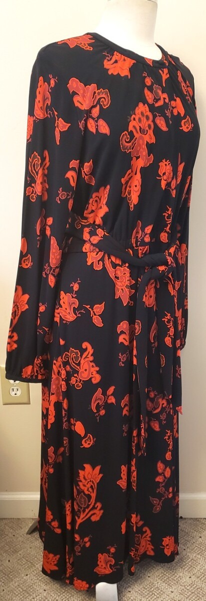 Tory Burch Black Long Belted Dress Size-XL Paisley Print Pattern