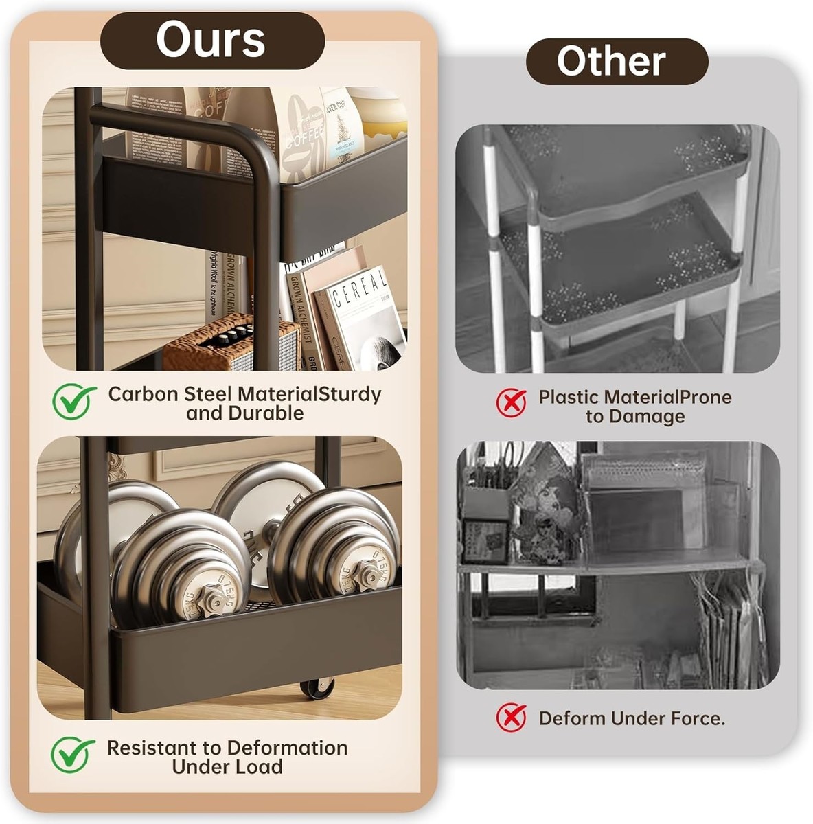 Stylish 3-Tier Utility Cart - Rolling Design and similar items