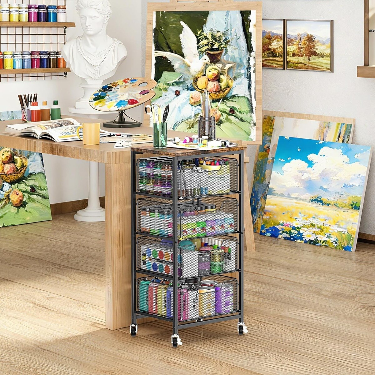 Versatile 4-Tier Utility Cart with Lockable Wheels - Perfect for Home & Office