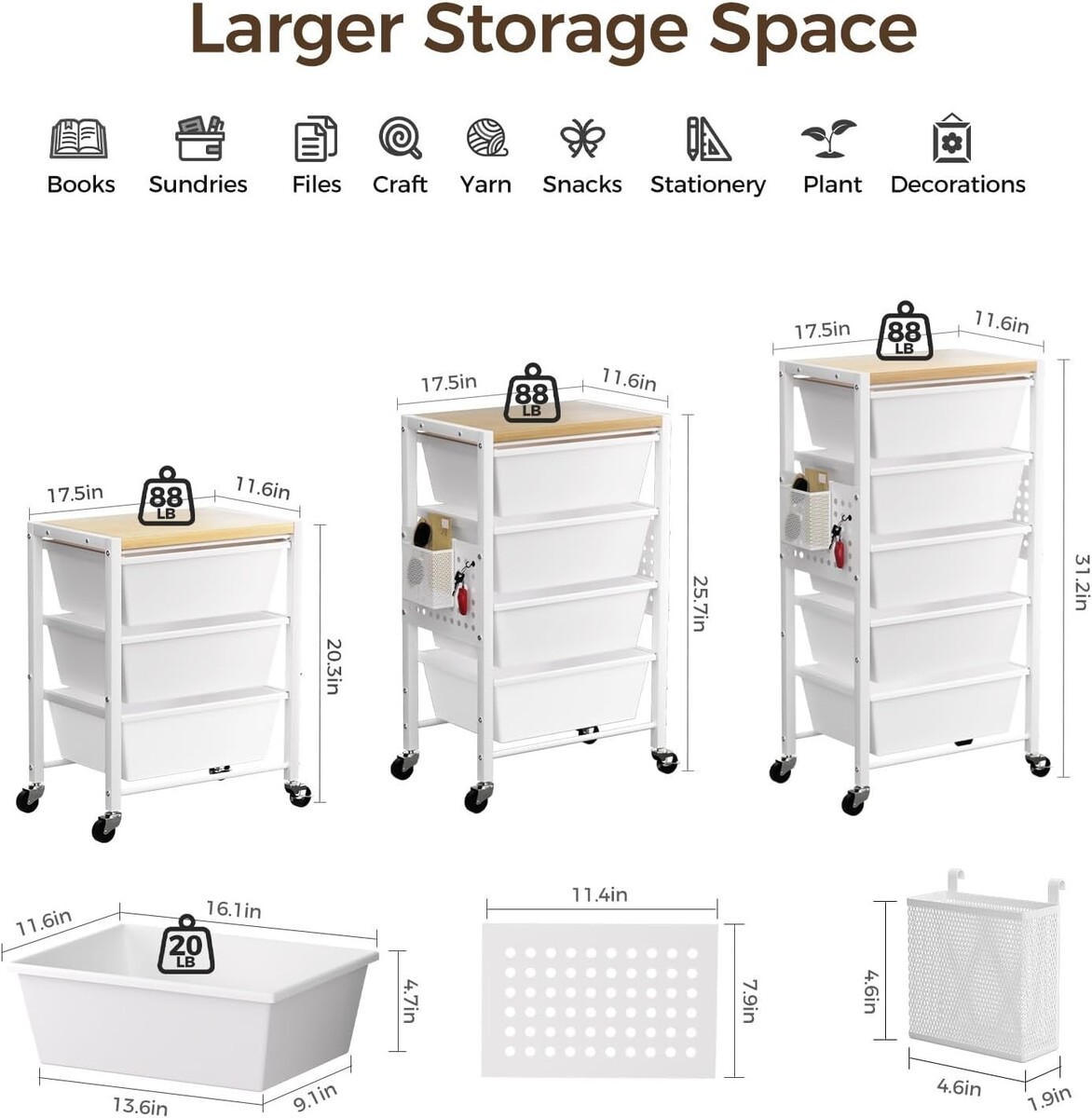 Sturdy and Durable: Built with a high-quality metal frame that is waterproof and rustproof. Each drawer is crafted from PP material to ensure longevity and can hold up to 20 pounds.