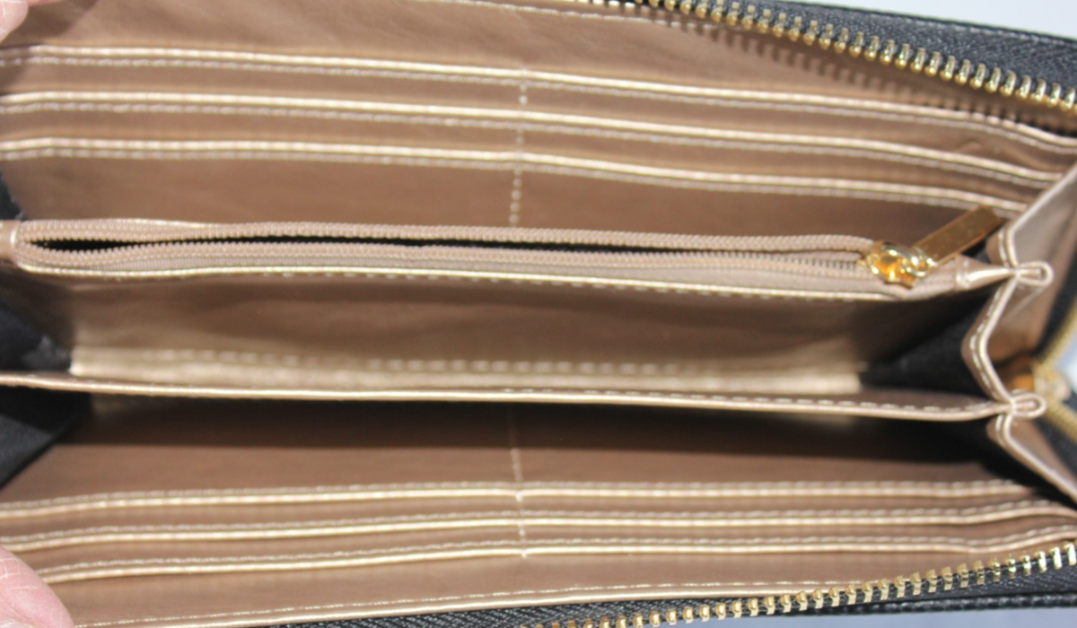 Interior Details: 12 Credit Card Slots, 2 Multi-functional Slots, Interior Coin Zip Pocket