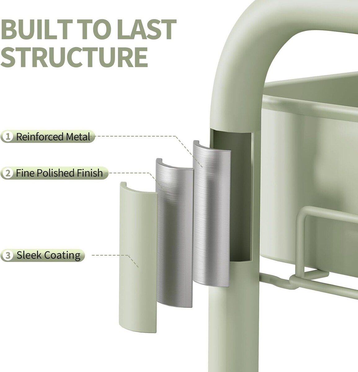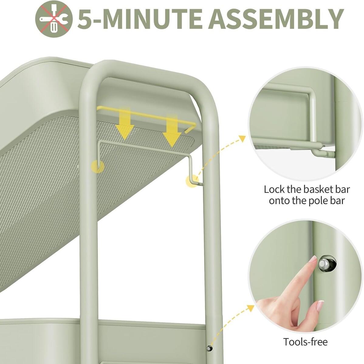 Constructed with heavy-duty metal, featuring 3 sturdy metal baskets and 4 durable wheels.