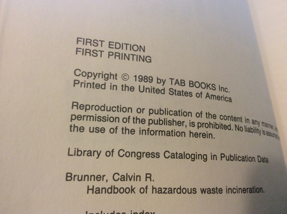 HANDBOOK of HAZARDOUS WASTE INCINERATION by CALVIN BRUNNER - 1st EDITION 1989