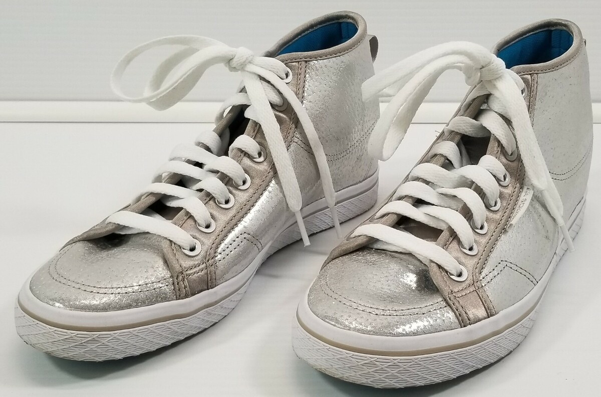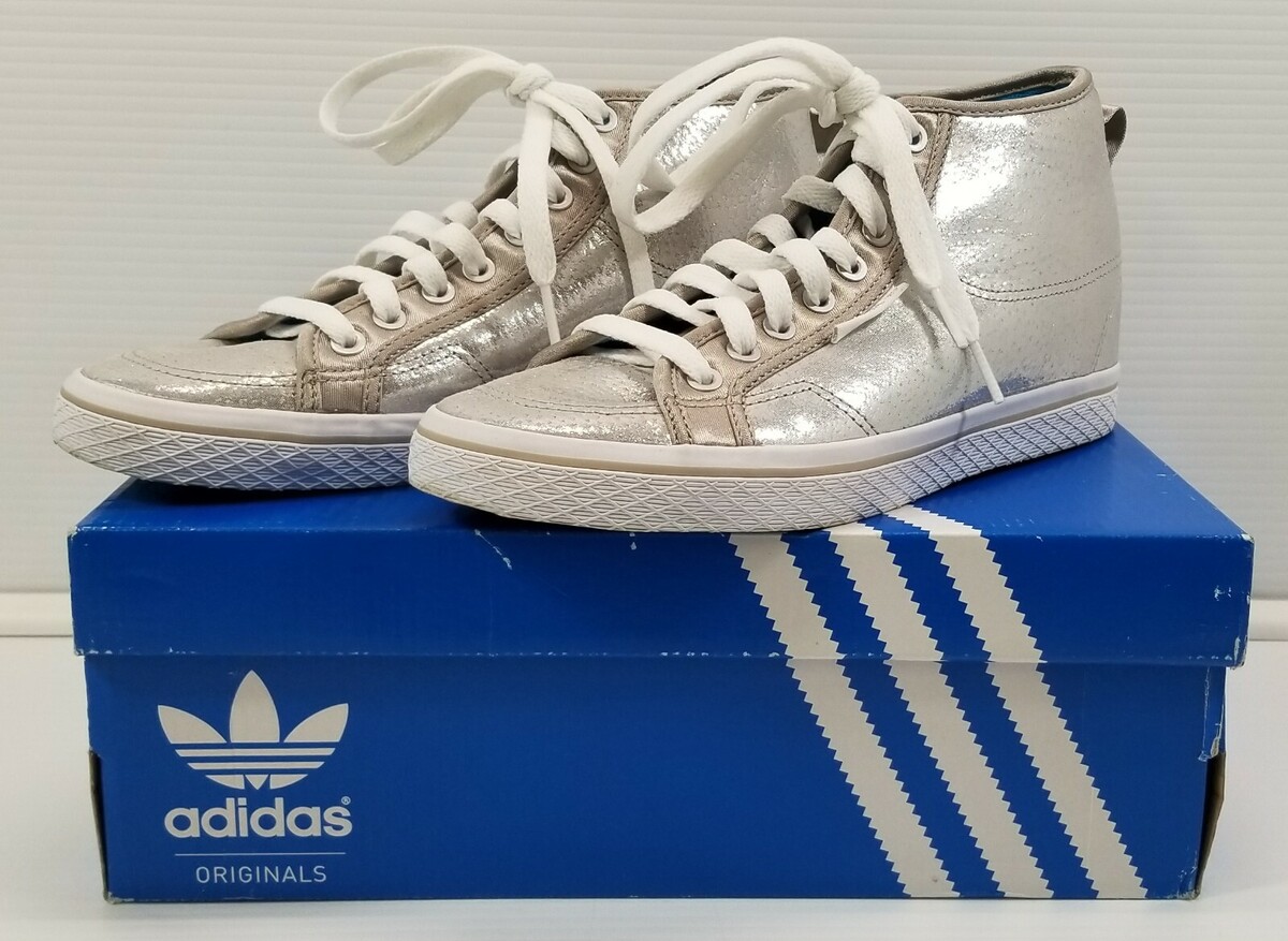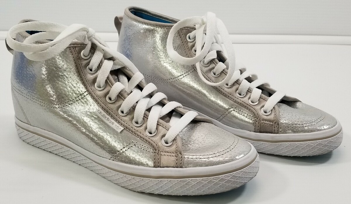 BG) Adidas Women's Honey Heel Mid Top Sneakers Shoes Silver Q23272 Size 9