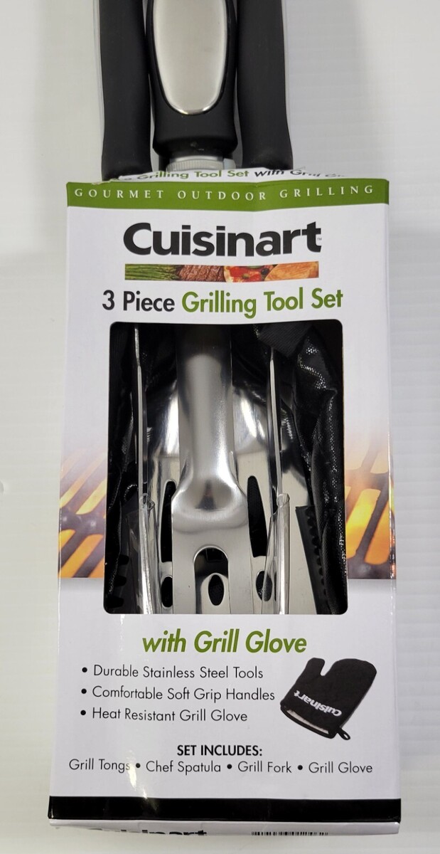 *L2) Cuisinart CGS-134BL Grilling Tool Set with Grill Glove, Black (3-Piece)