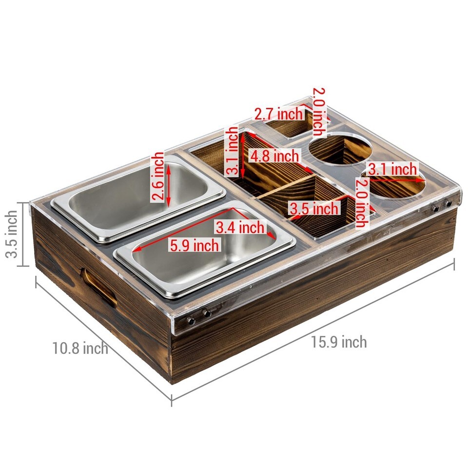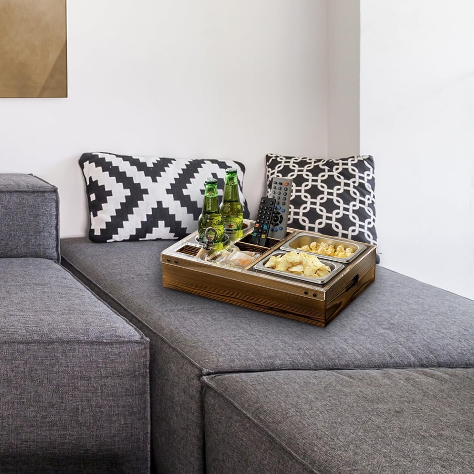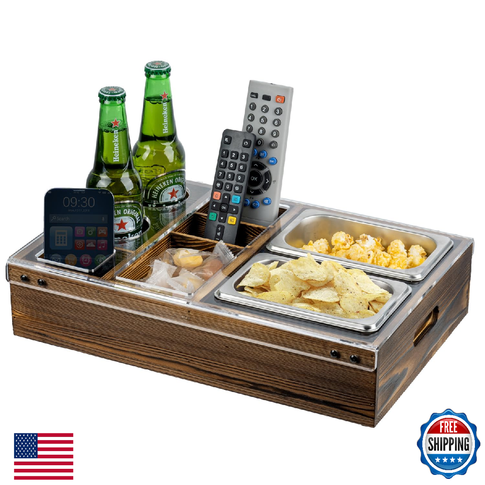 MyGift Rustic Wood & Clear Acrylic Couch Caddy TV Snack Tray w/ Bowls