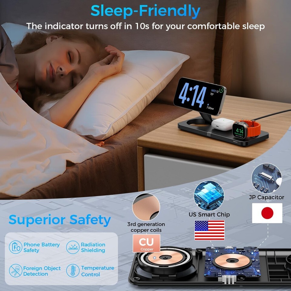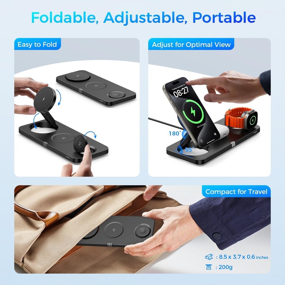 3-in-1 Wireless Charging Station Apple Watch iPhone AirPods 15W Fast Magnetic Fo