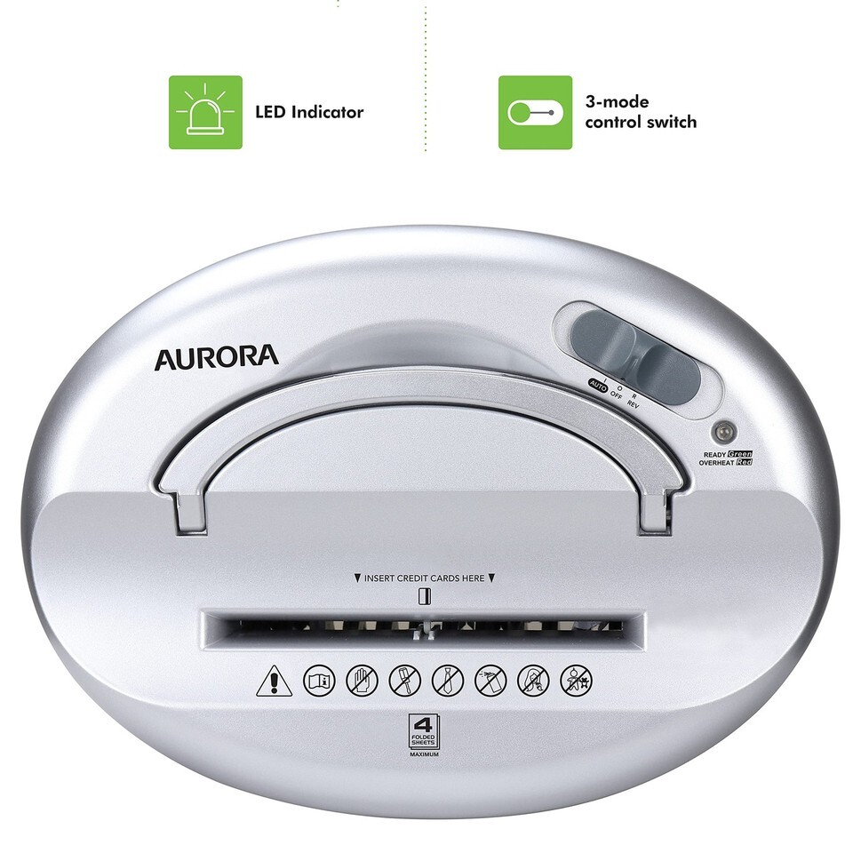 Aurora Desktop-Style Cross-Cut Paper Shredder, 4-Sheet Crosscut Desktop