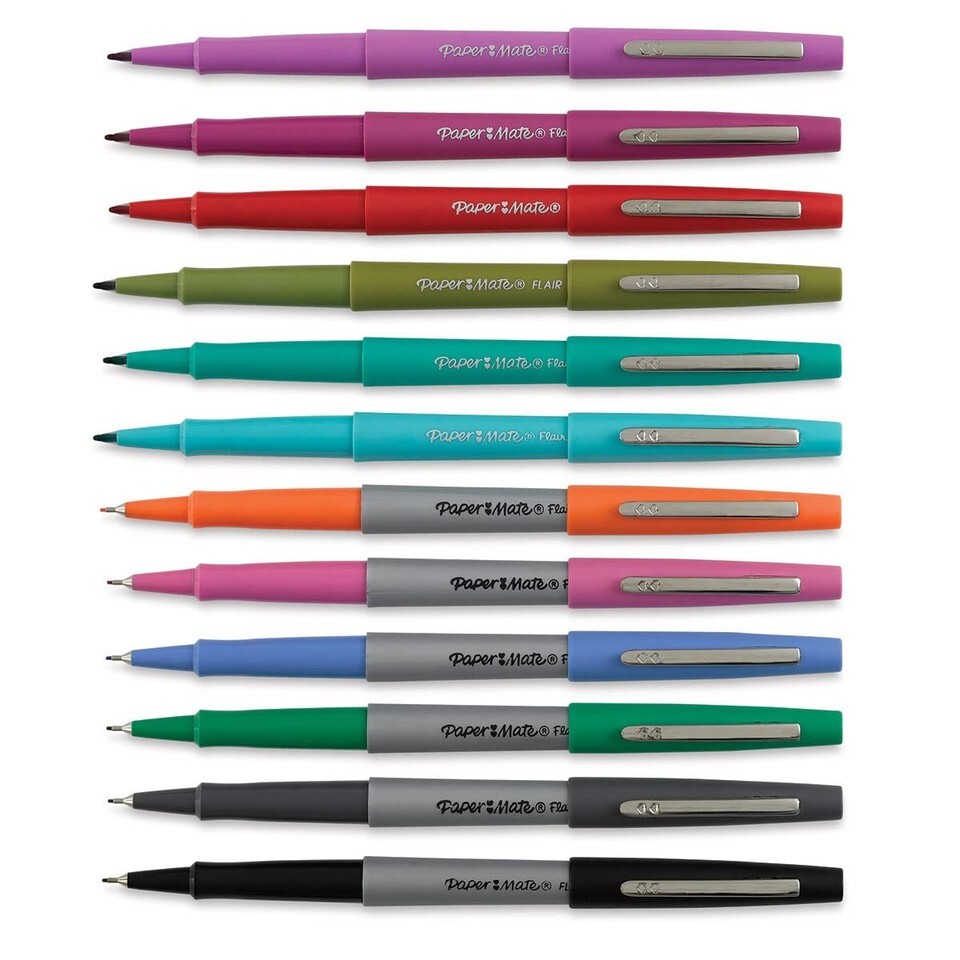 Paper Mate Flair Felt Tip Pen Set, Journaling Pack, Assorted Colors, Set of 12