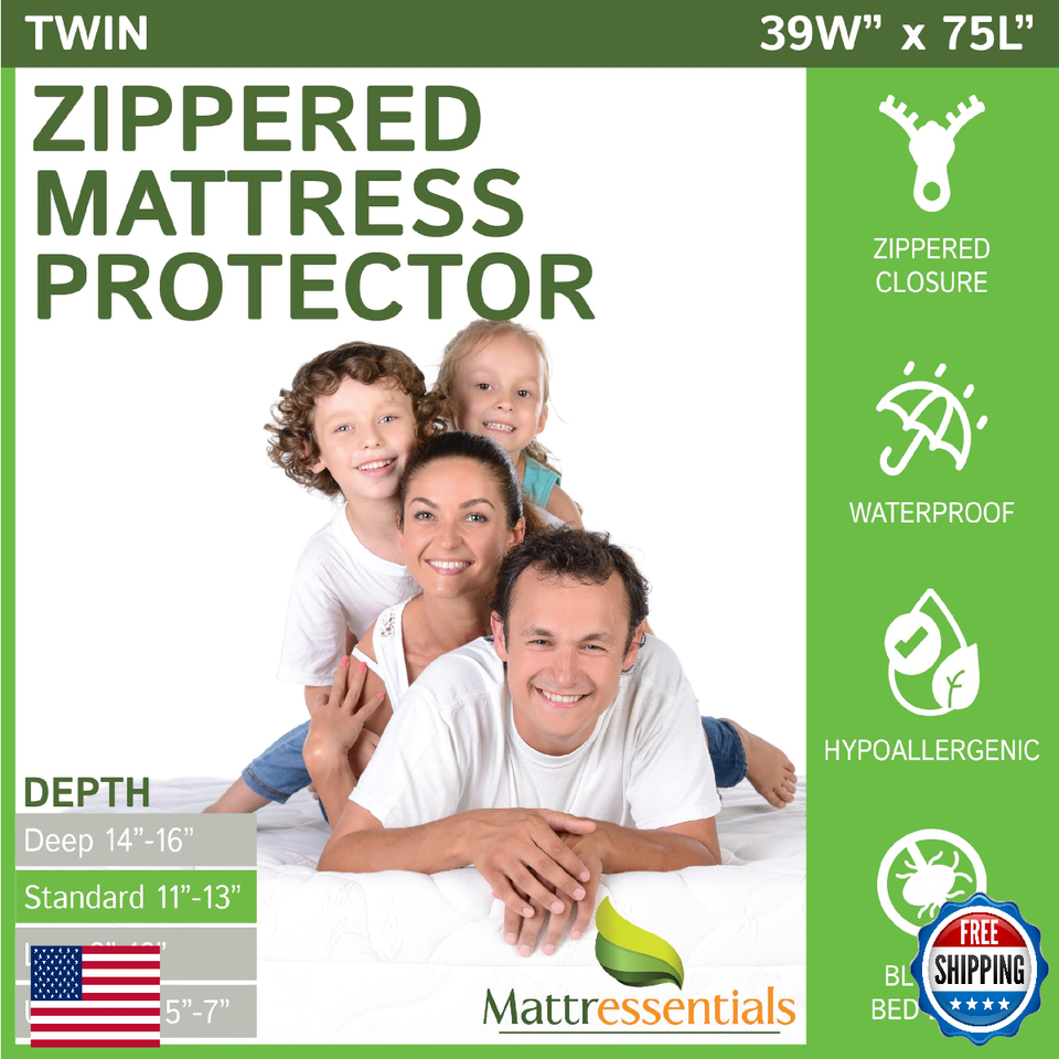 Zippered Twin Mattress Protector 11-13" Waterproof Bed Bug Hypoallergenic Encase