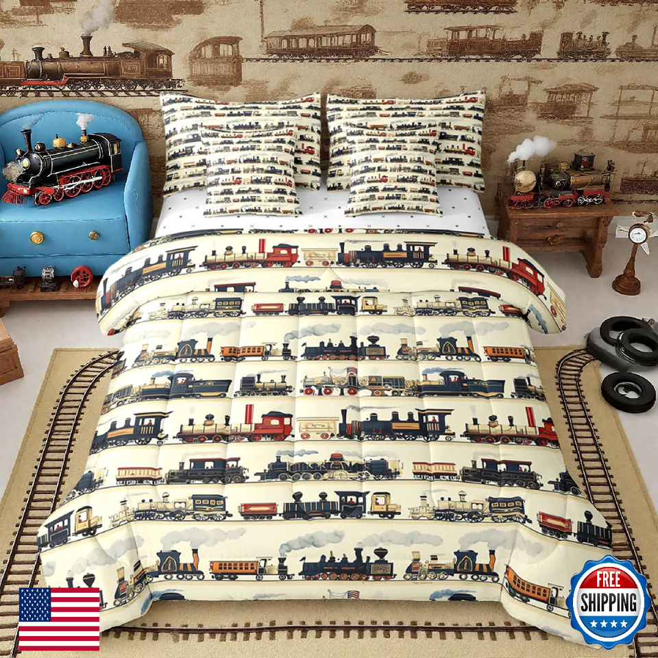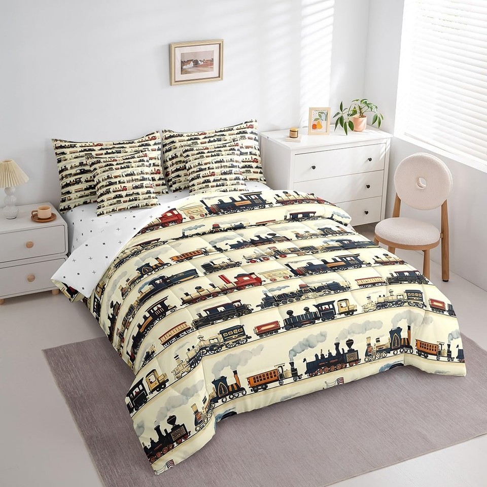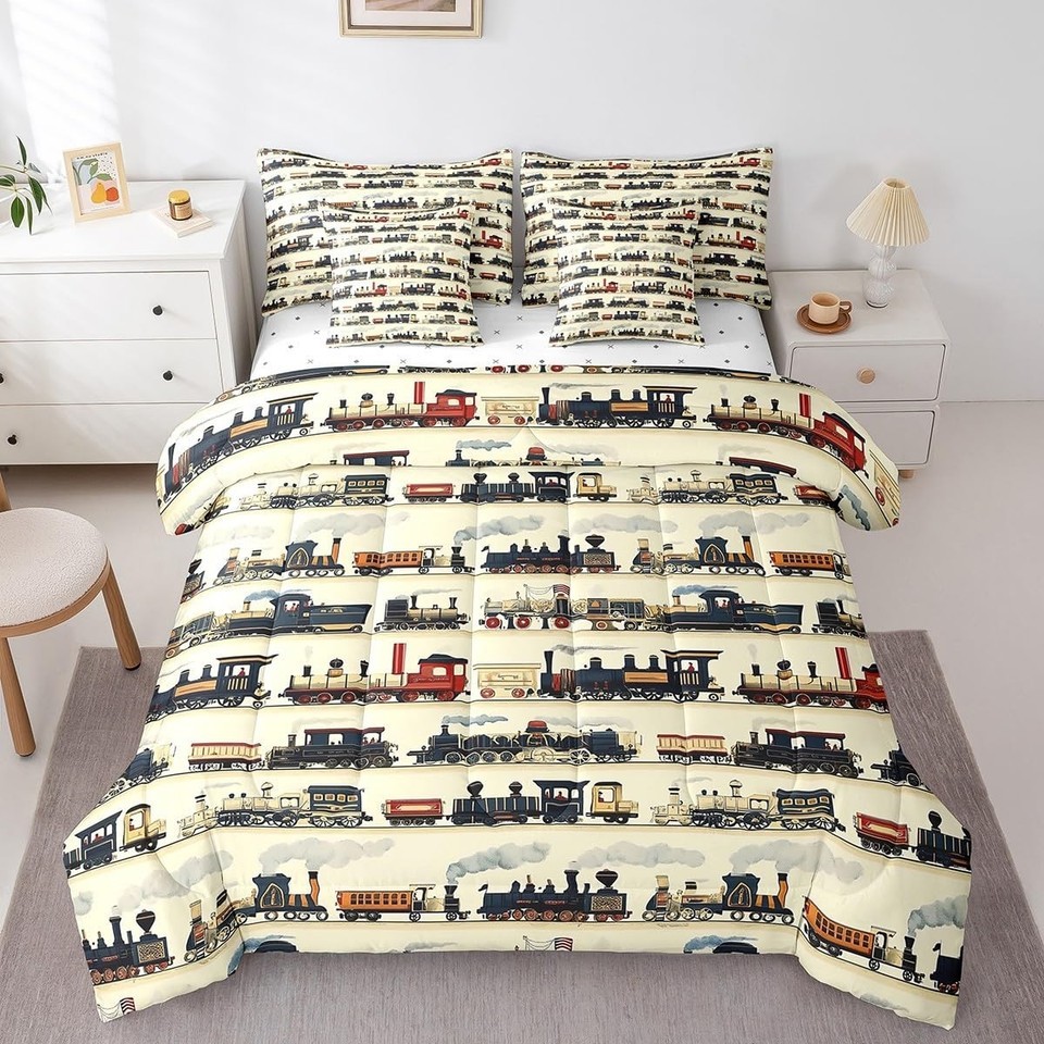 Feelyou Vintage Train Comforter Set Twin 7 Pcs Retro Steam Engine Retro Steam Lo