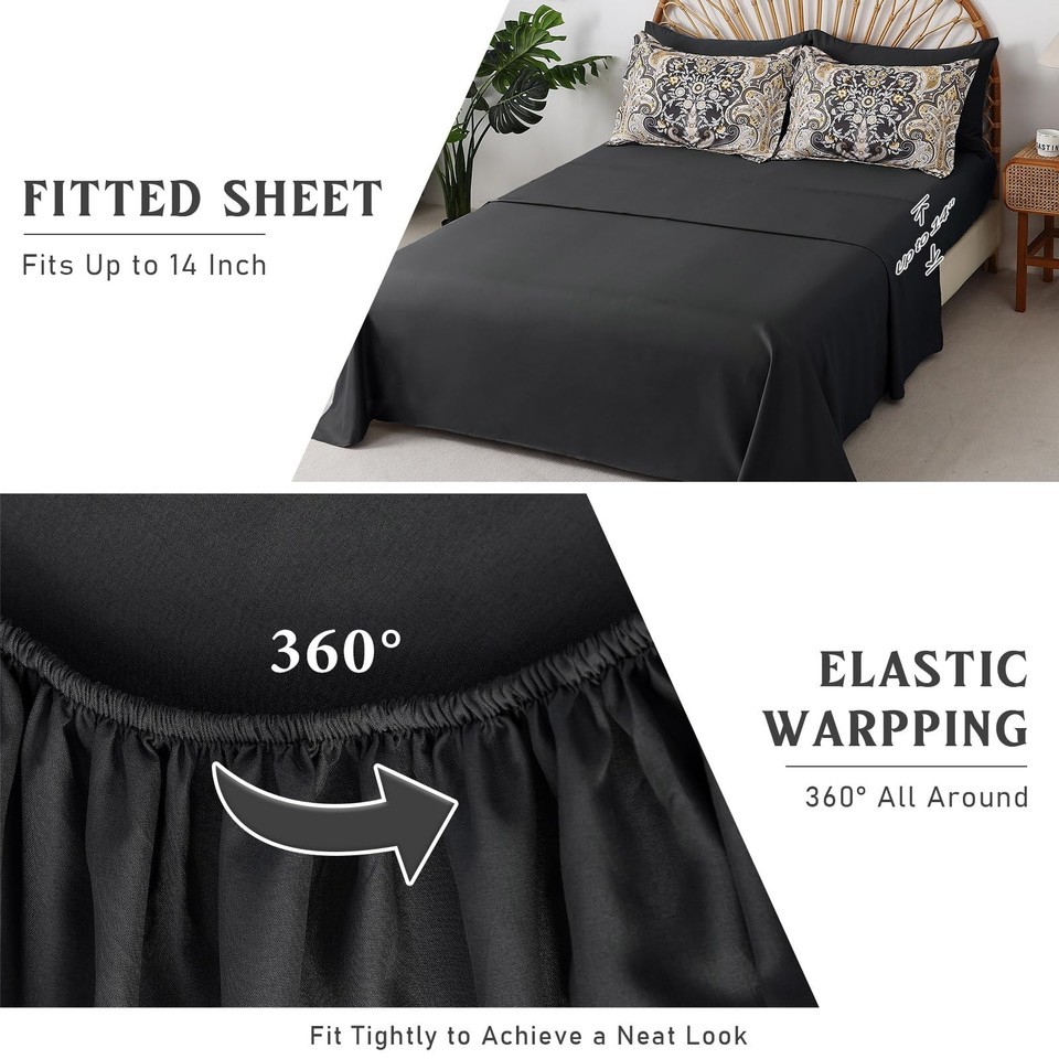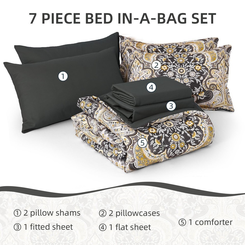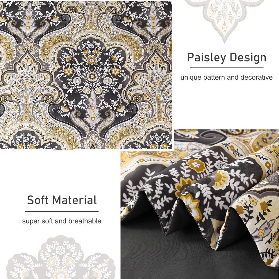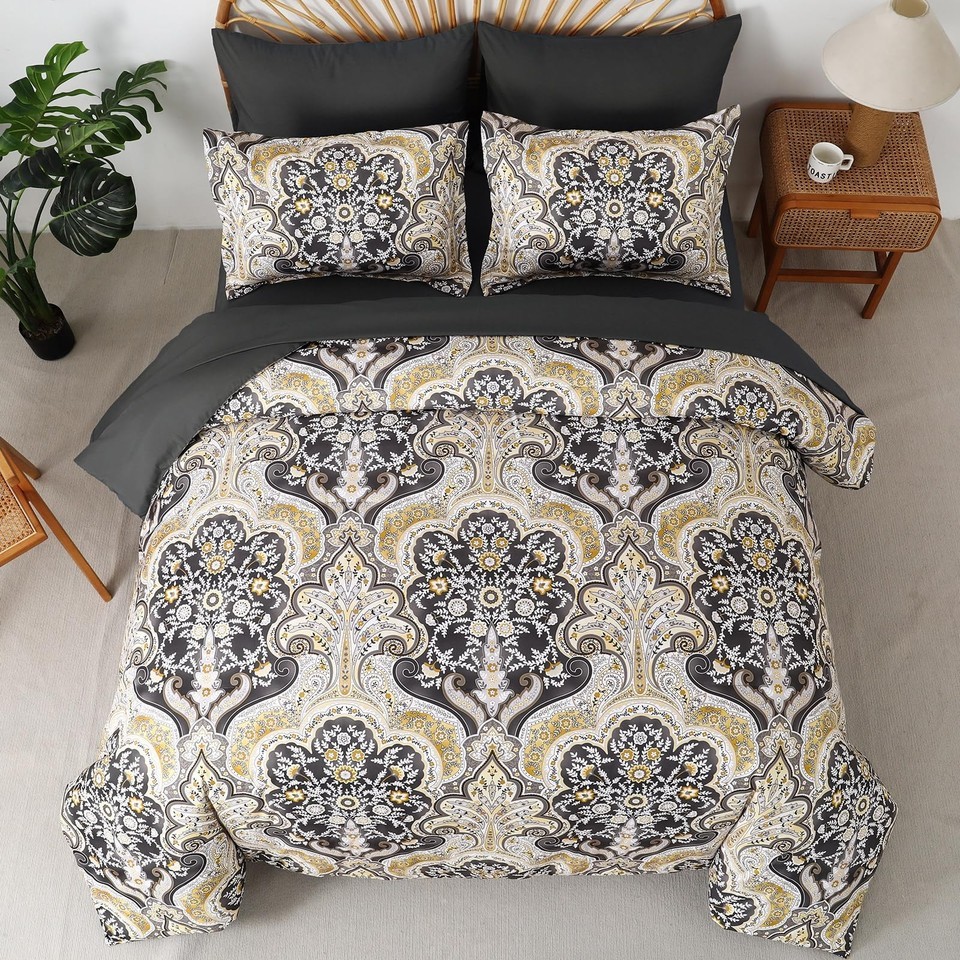 Drucon Boho Paisley Comforter Set Queen Size 7 Pieces Bed in a Bag Black Gold So