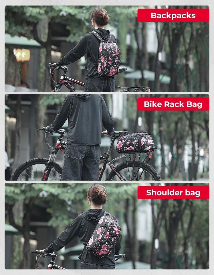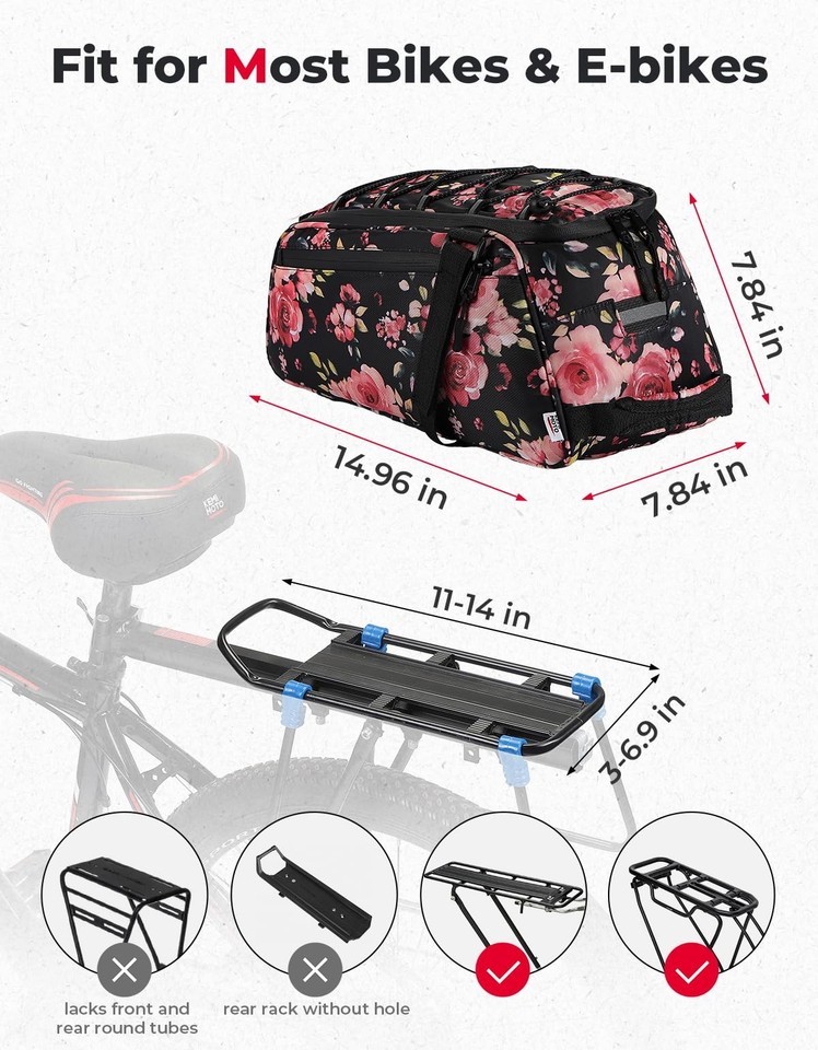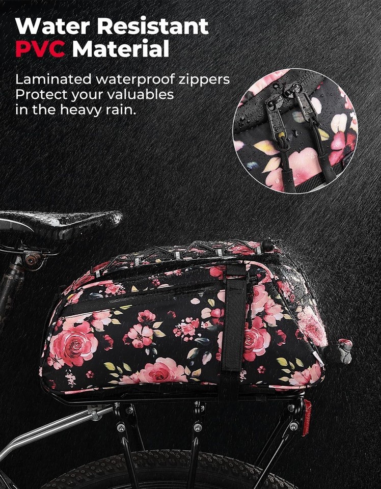 KEMIMOTO Rear Bike Rack Bag, 13L Water-resistant Trunk Bags 3-IN-1, Zippered Bic