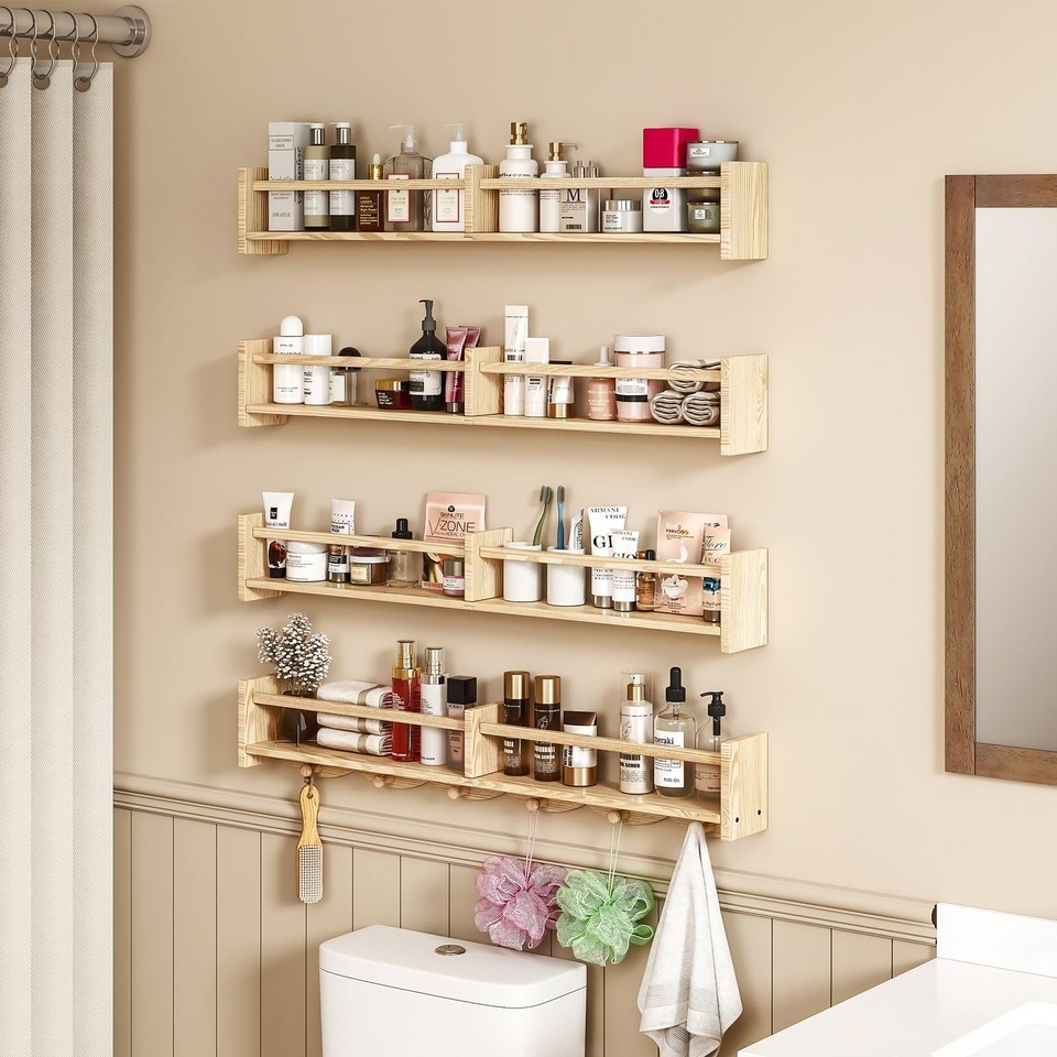 ECOOCE 34Inch Nursery Bookshelves,Set of 4,Wall Floating Shelf Kids Coat Rack wi