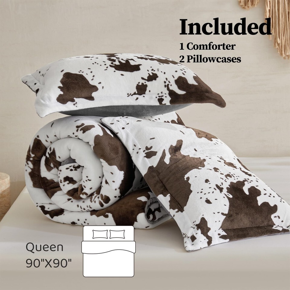 Petrichor Velvet Flannel Queen Comforter Set- Cow Print Western Style Blanket,Lu