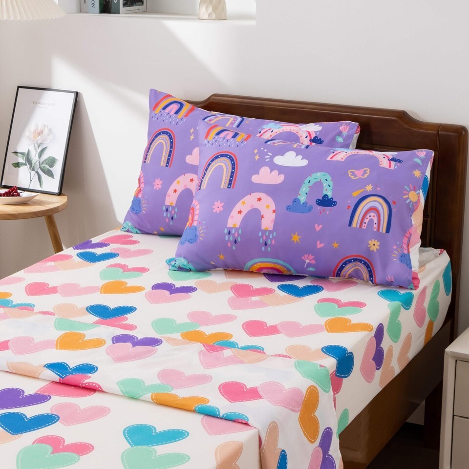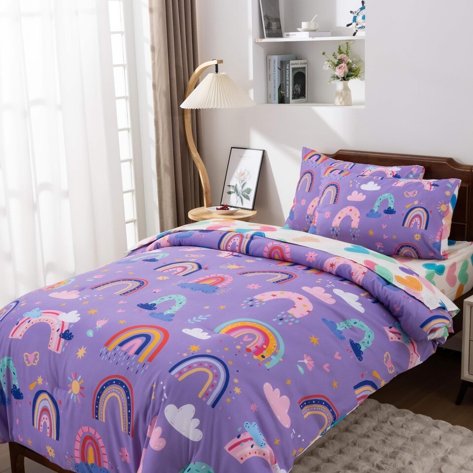 Btargot 5 Piece Dark Purple Rainbow Comforter Set for Girls Boys Kids, Twin Size