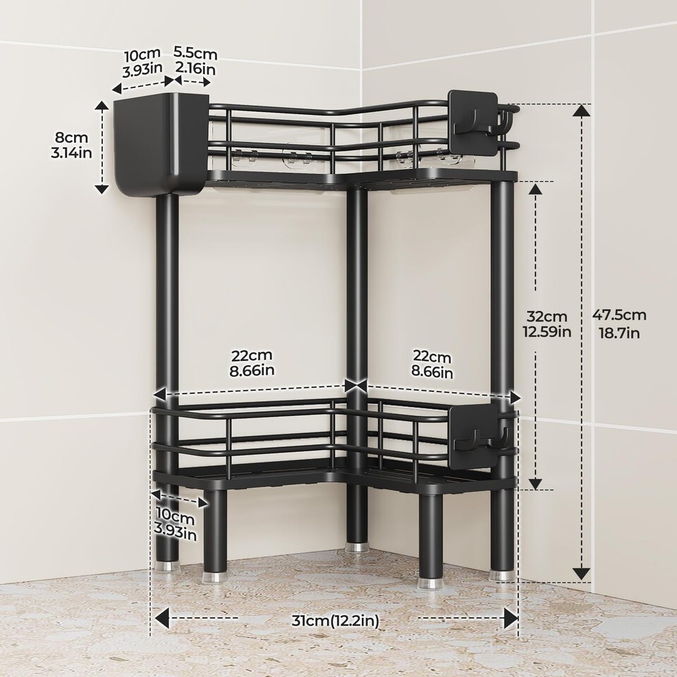 Orimade Rustproof 2 Tier Floor Standing Corner Shower Caddy Organizer with Tooth