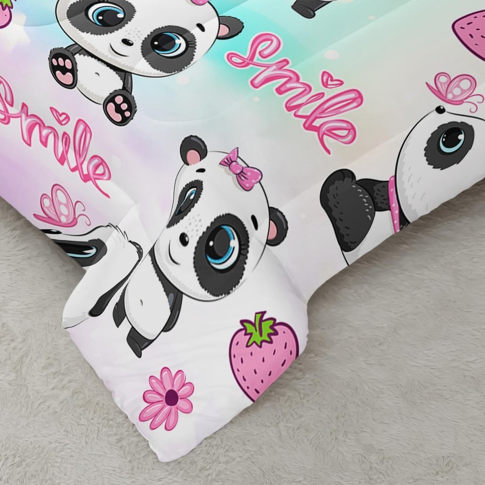 XYNHML Kawaii Black White Panda Flower Comforter 3Pcs Full Tie Dye Wild Animal B