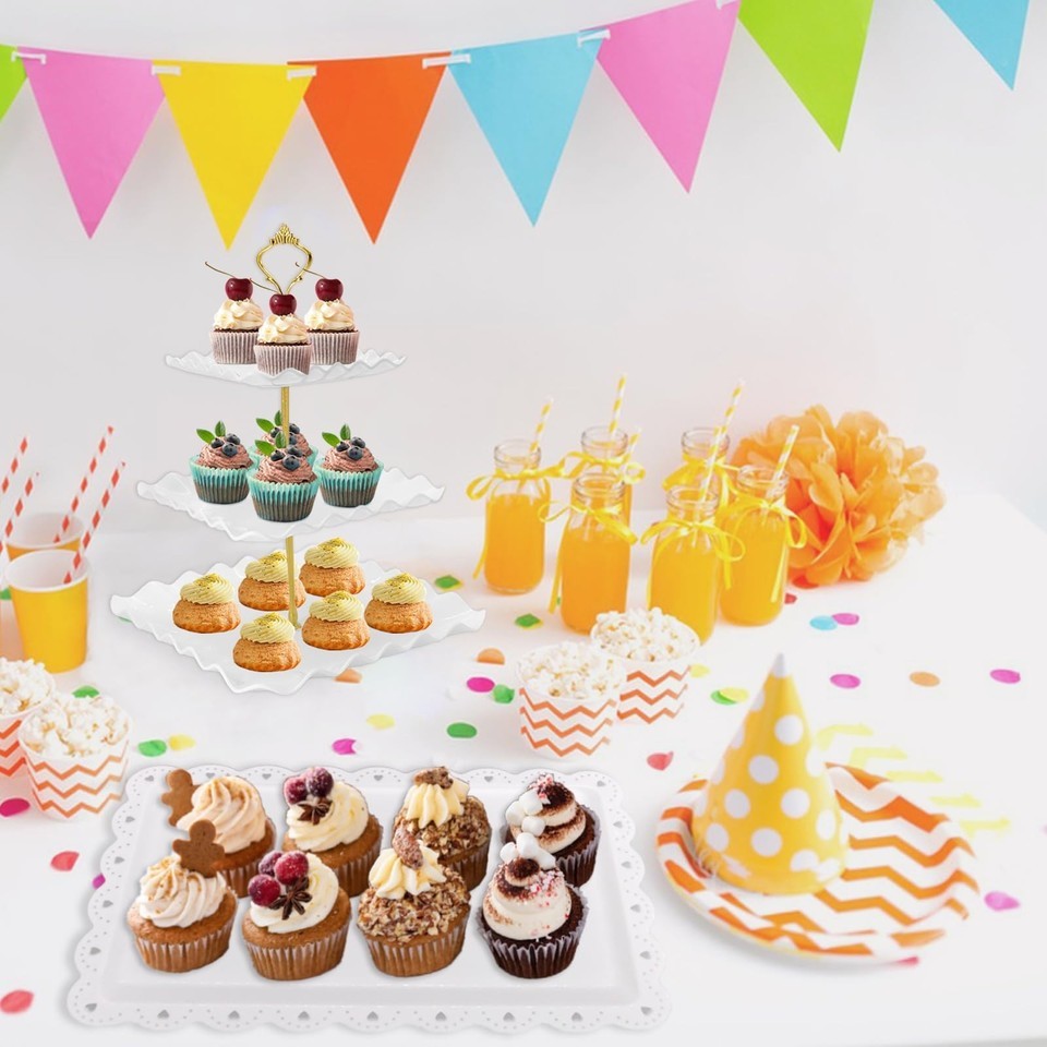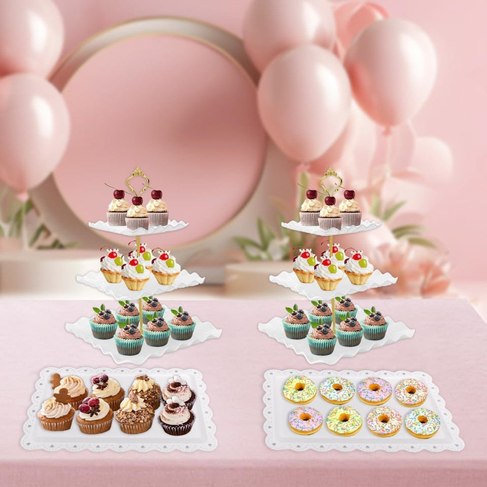 NAXIHOPT 5 Pcs Dessert Table Display Set, White Plastic 2 Pcs Square 3 Tier Cupc