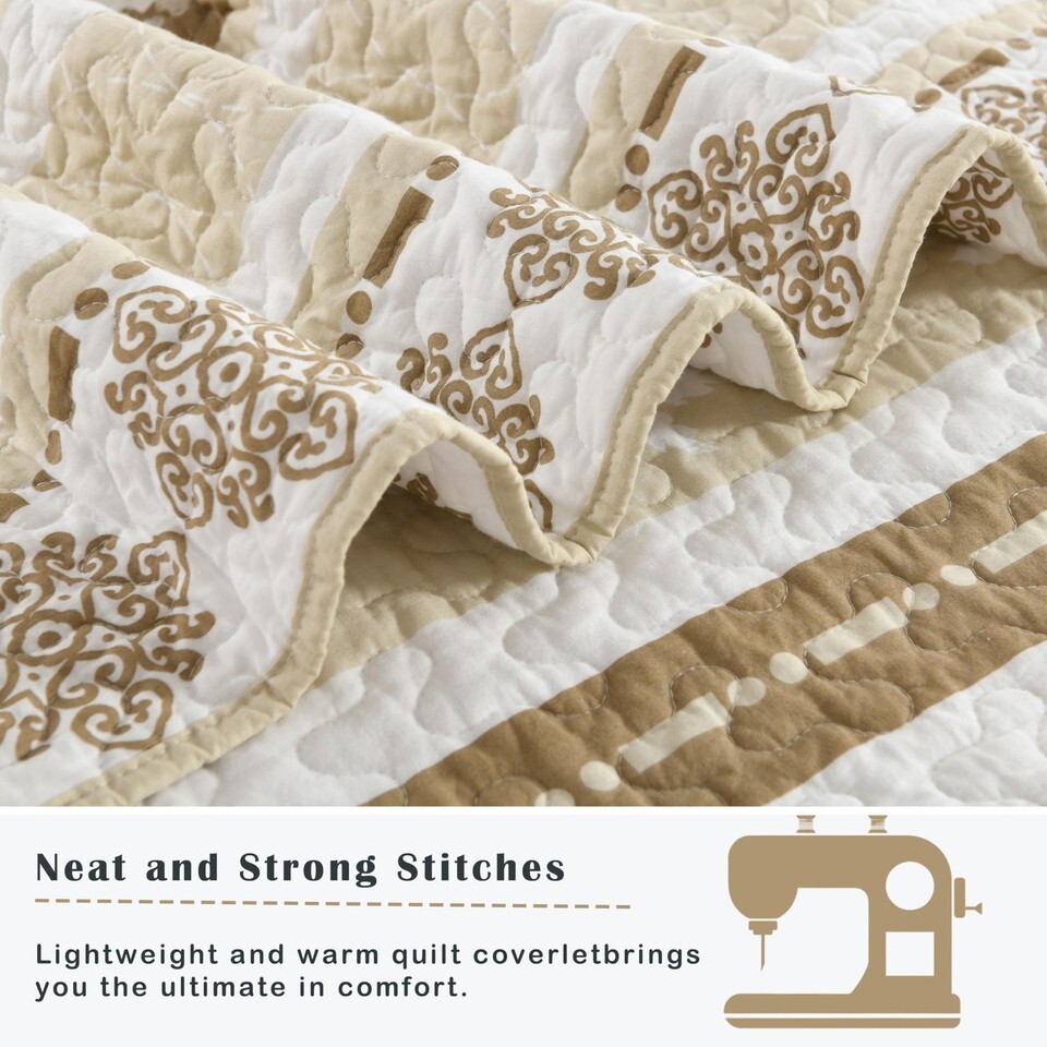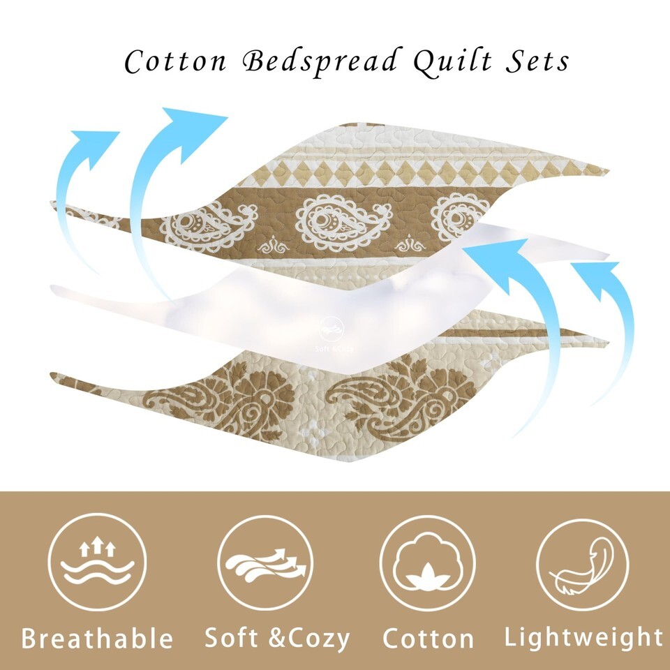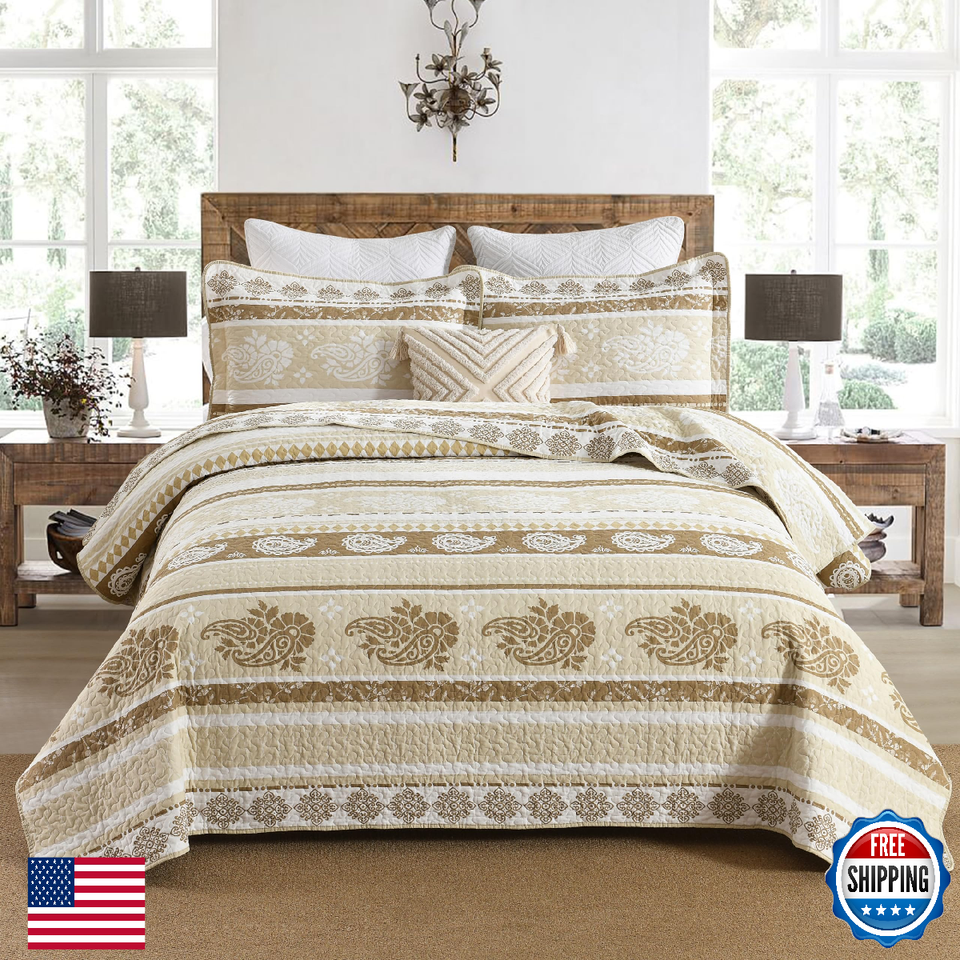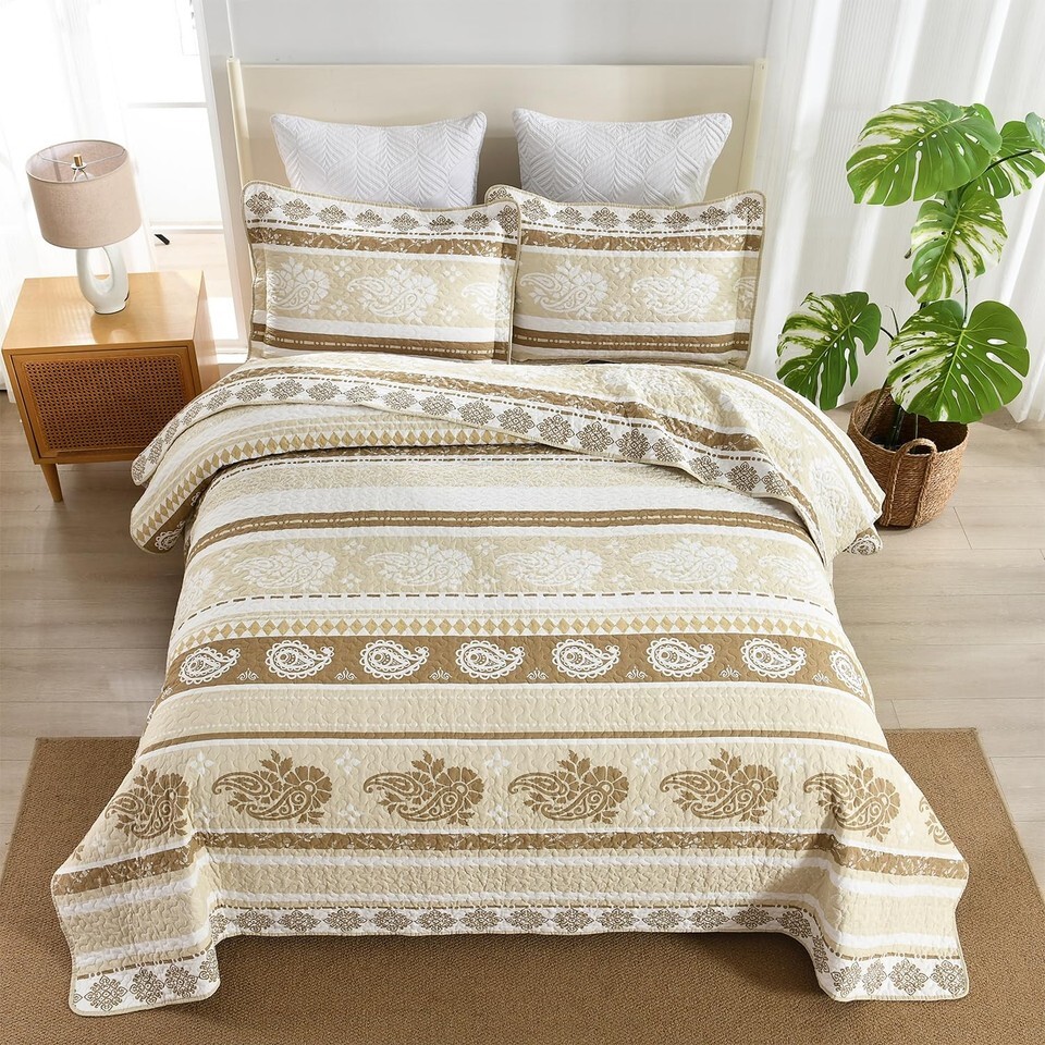 AJOCCI Quilt Bedding Set Queen Size Cotton Comforters Set Brown Taupe Quilts Bed