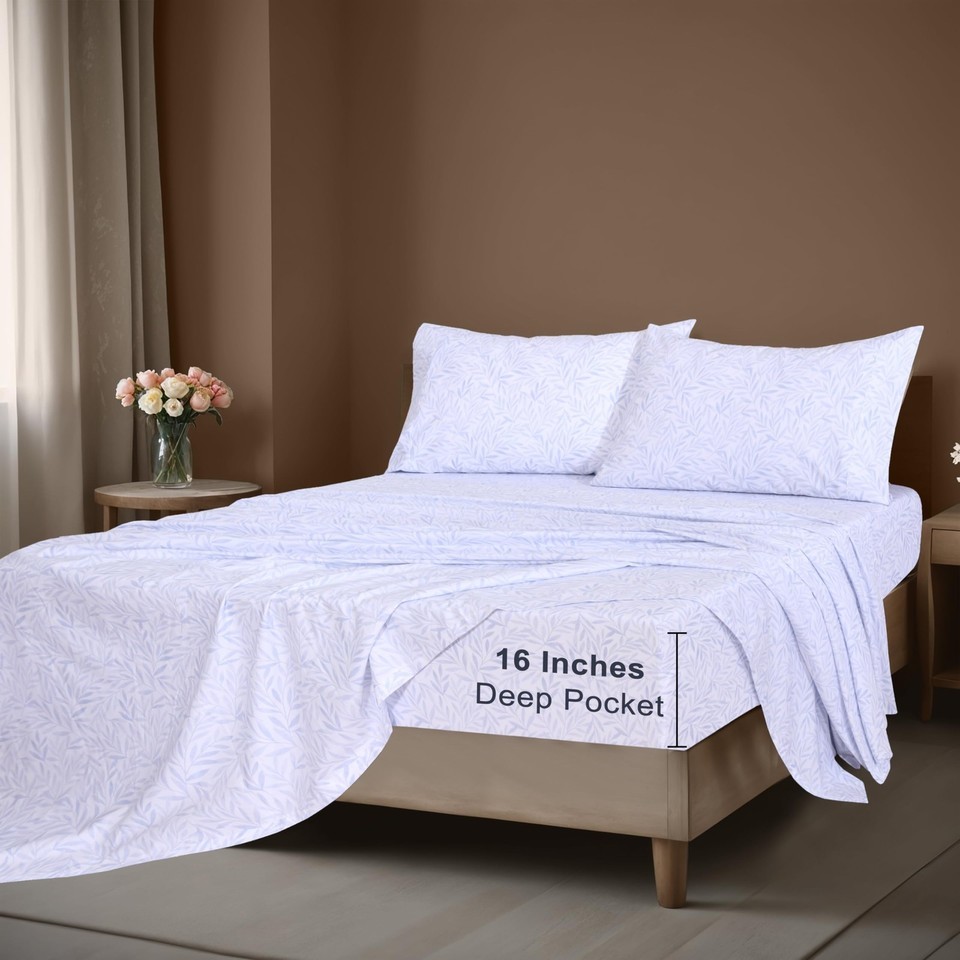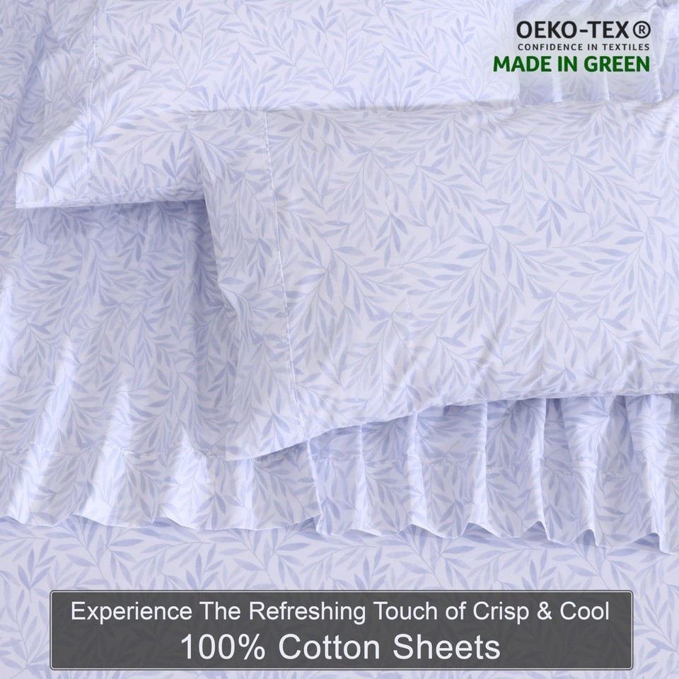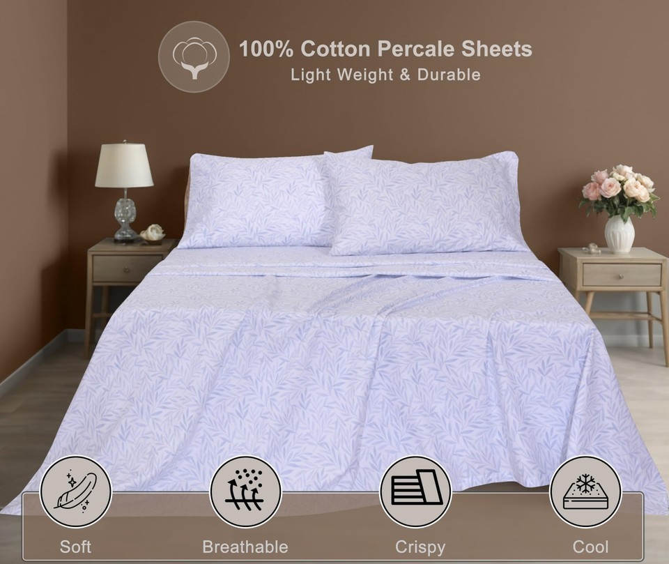 ZOYER Twin Cotton Percale Sheets - Blue Autumn, 3-Piece Set, 16" Deep Pocket