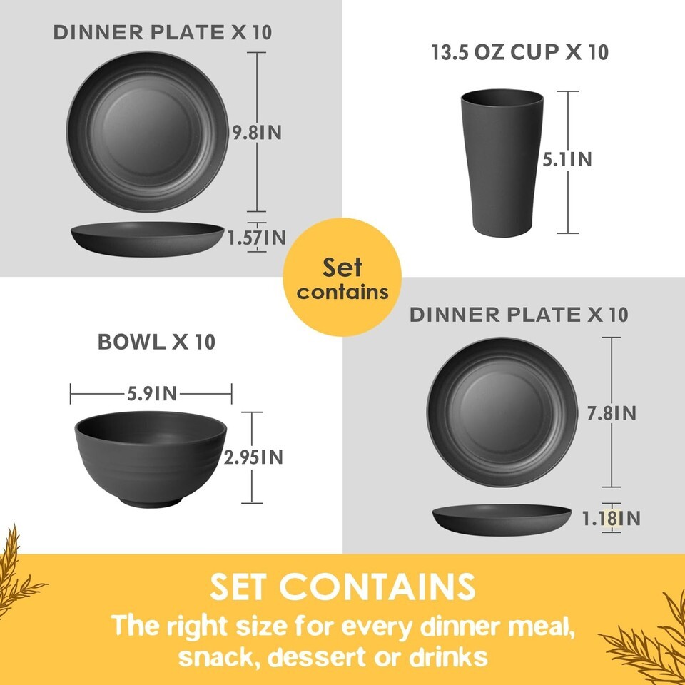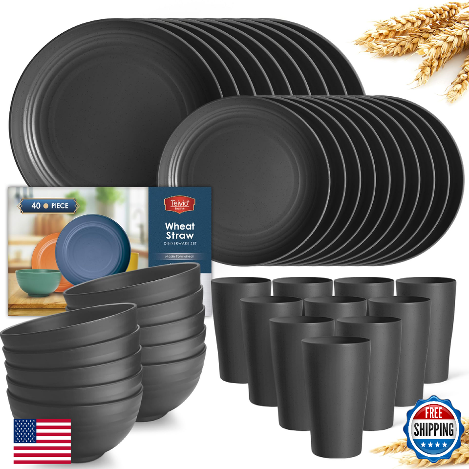 Teivio 40-Piece Kitchen Plastic Wheat Straw Dinnerware Set, Service for 10, Dinn