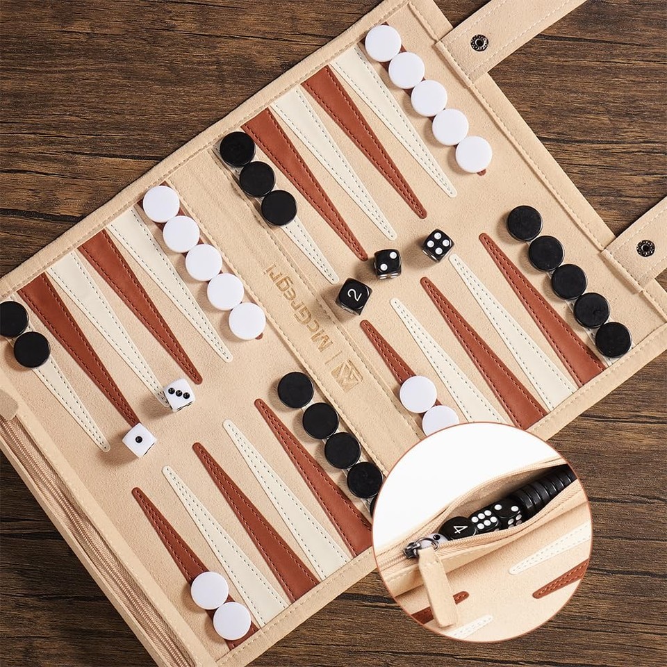 McGregri Backgammon Game Set - Roll up Board Games- Portable Travel Backgammon f