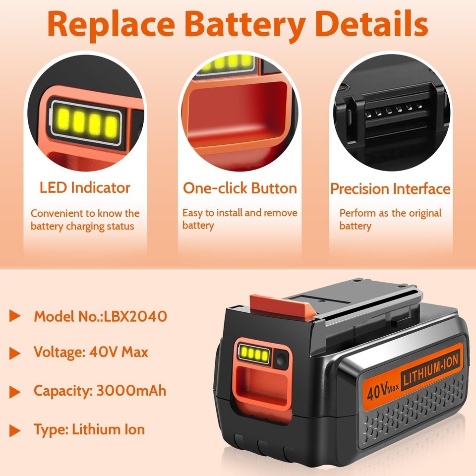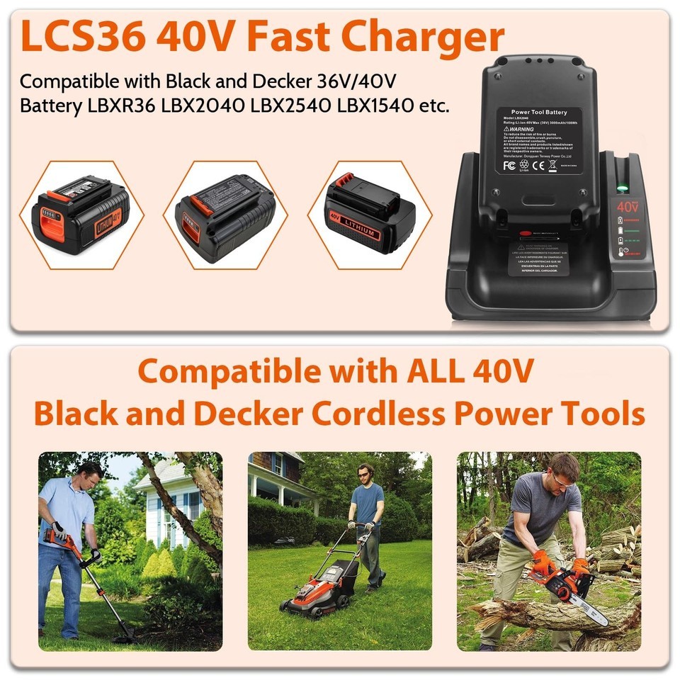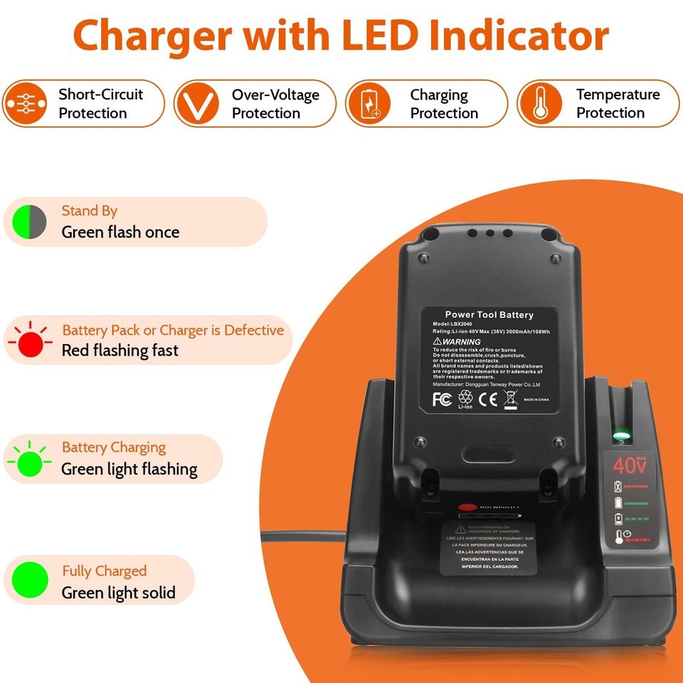 PENGJBATTER 40V 3000mAh Lithium Battery Charger Combo for Black&Decker LBXR36 LB