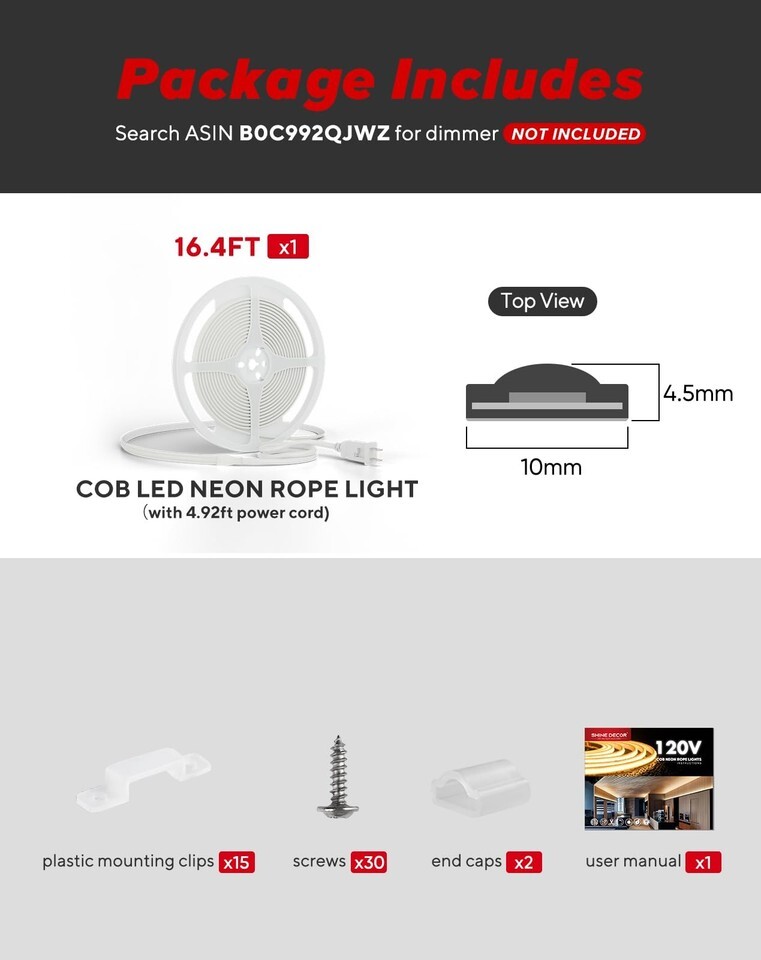 Shine Decor Blue COB LED Rope Light 16.4ft and similar items