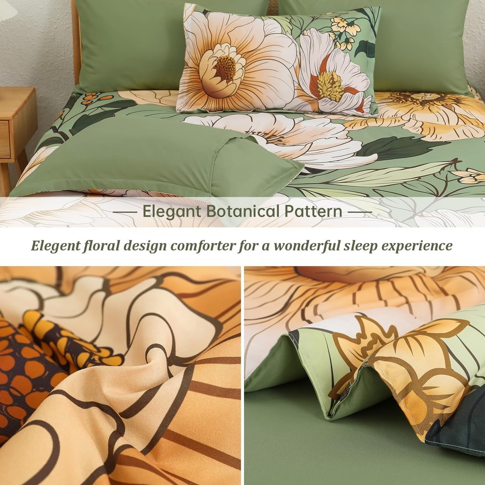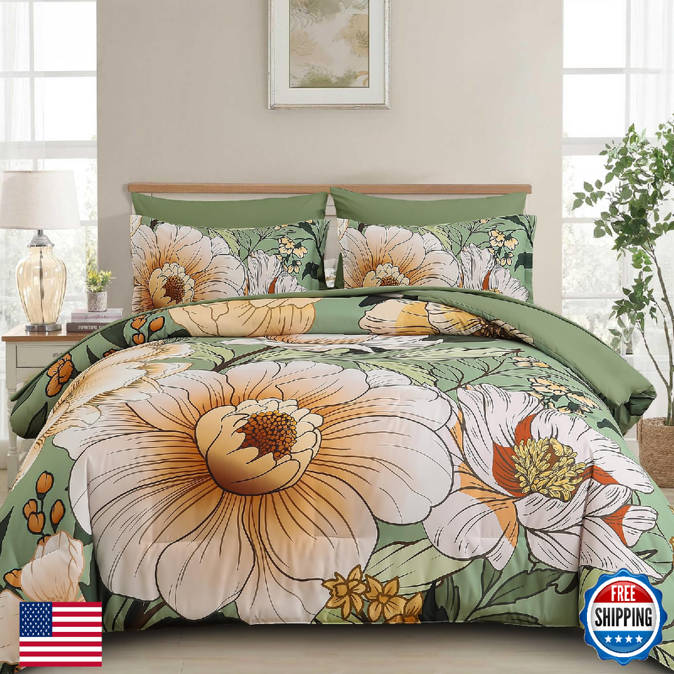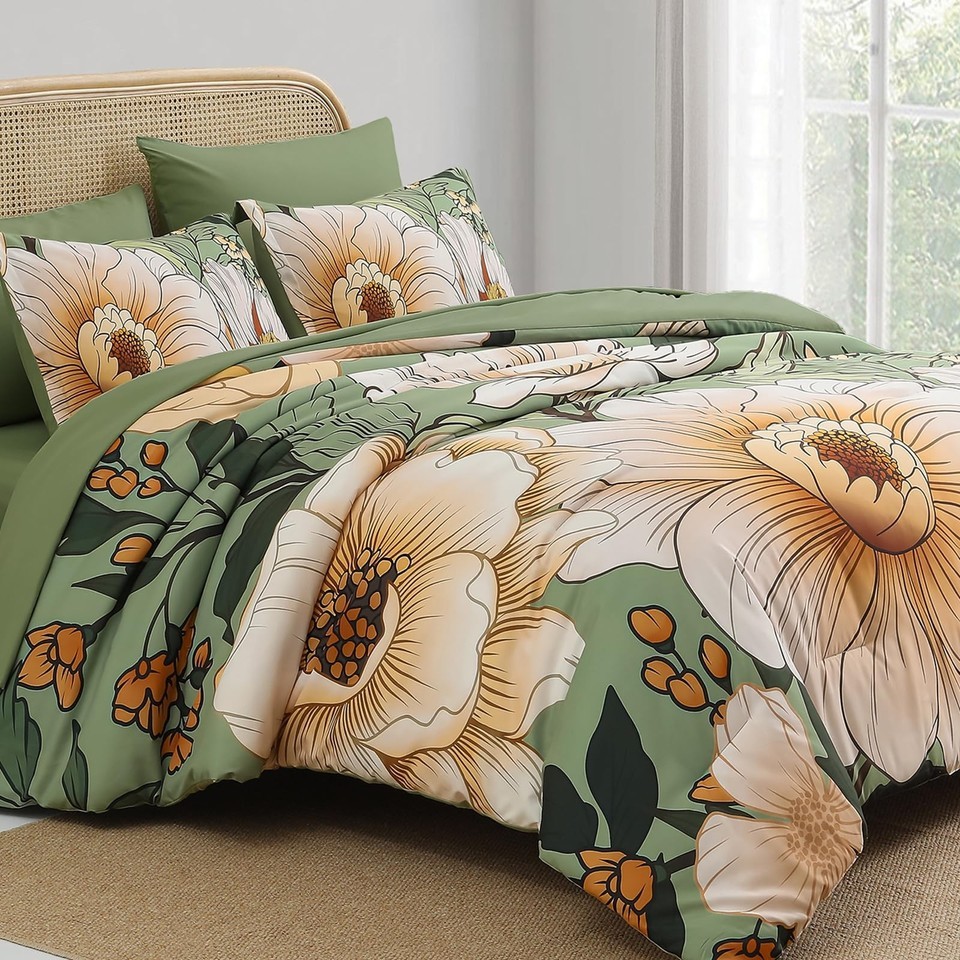 Xruibed Queen Comforter Set 7 Pieces Green Floral Comforter Set Queen Size Bed i