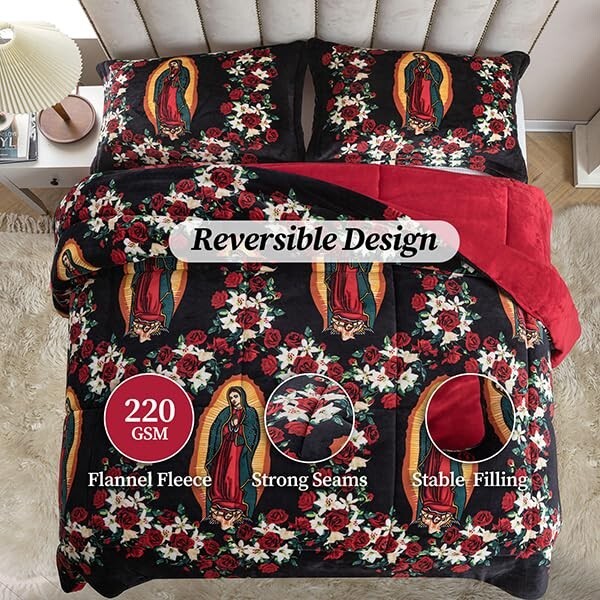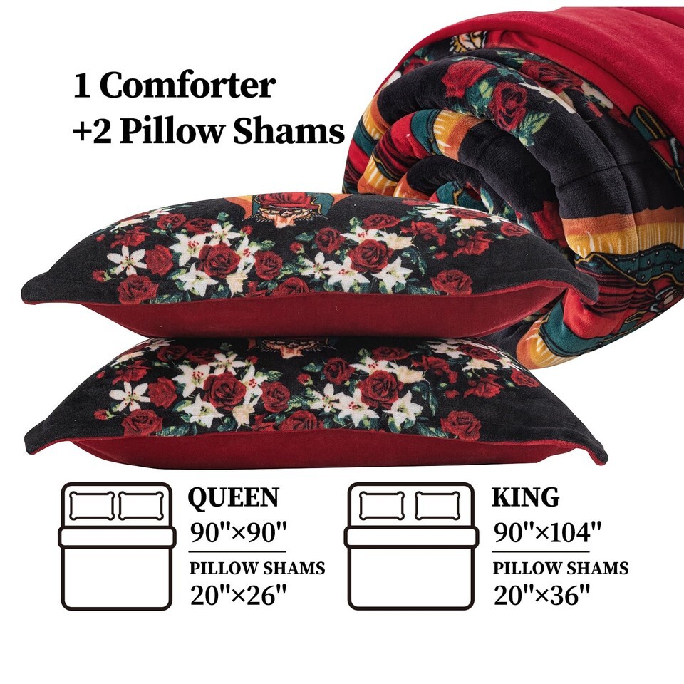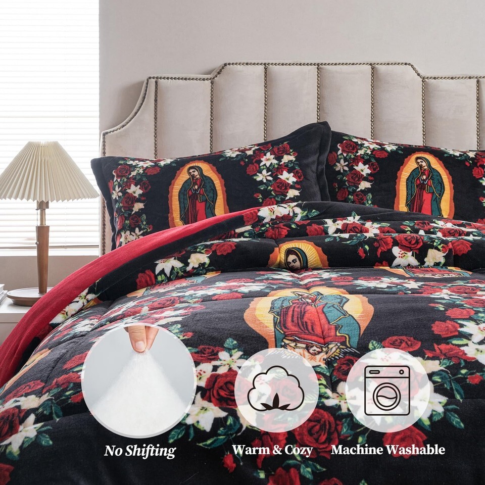 Petrichor Virgin Mary Guadalupe Velvet Flannel Queen Comforter Set-Luxury Fuzzy