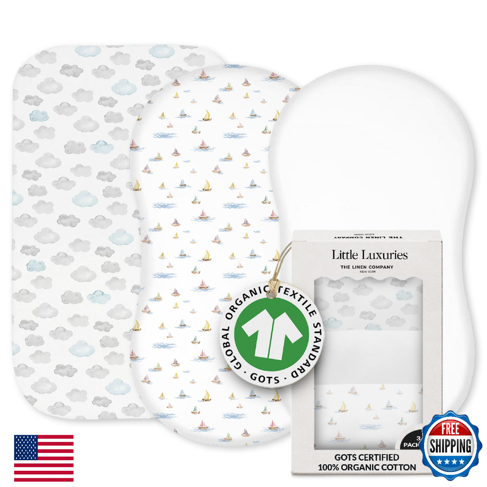100% Organic Cotton Baby Bassinet Sheets 3-Pack - Fits Angelbliss, Maxi-COSI Ior
