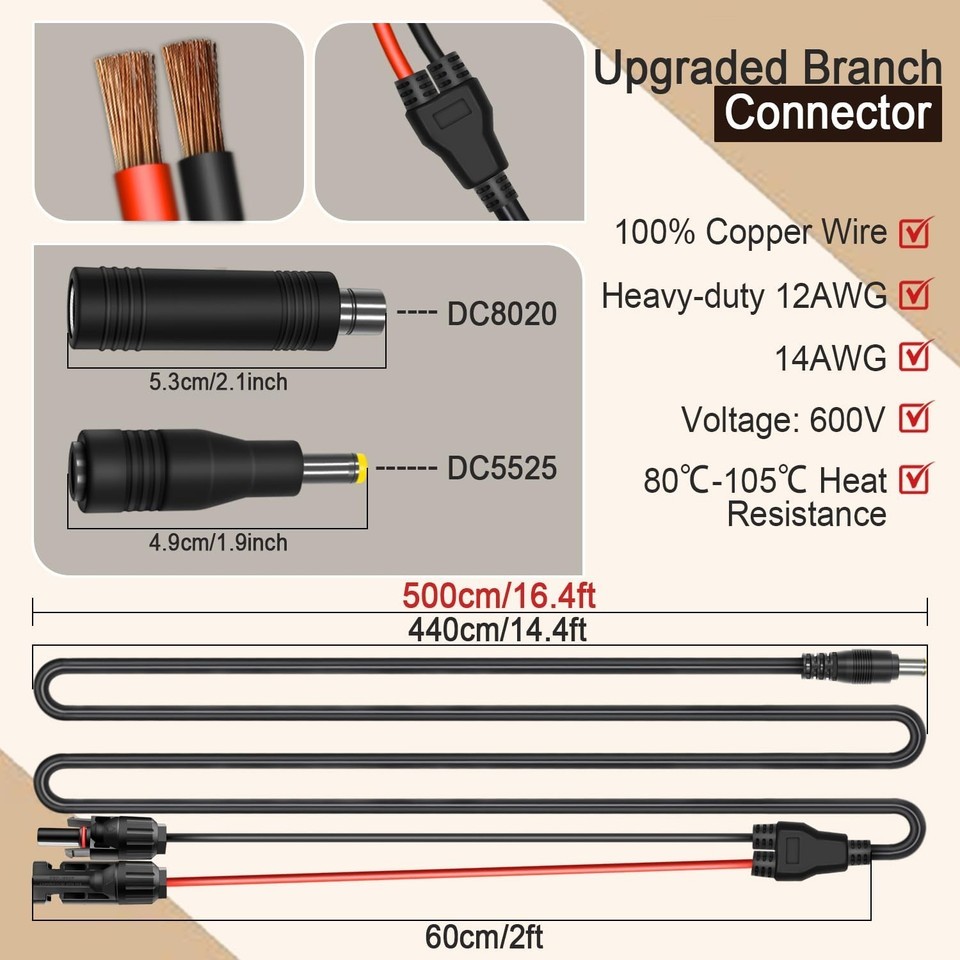 COMeap 16.4FT/5M Solar Panel Adapter for Jackery, Compatible with MC-4 to DC 8mm