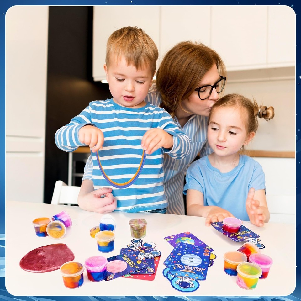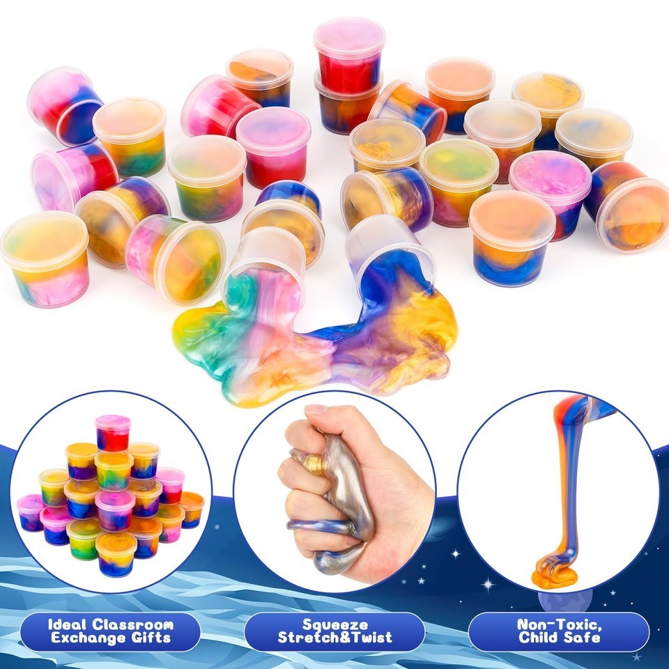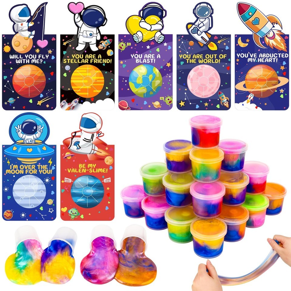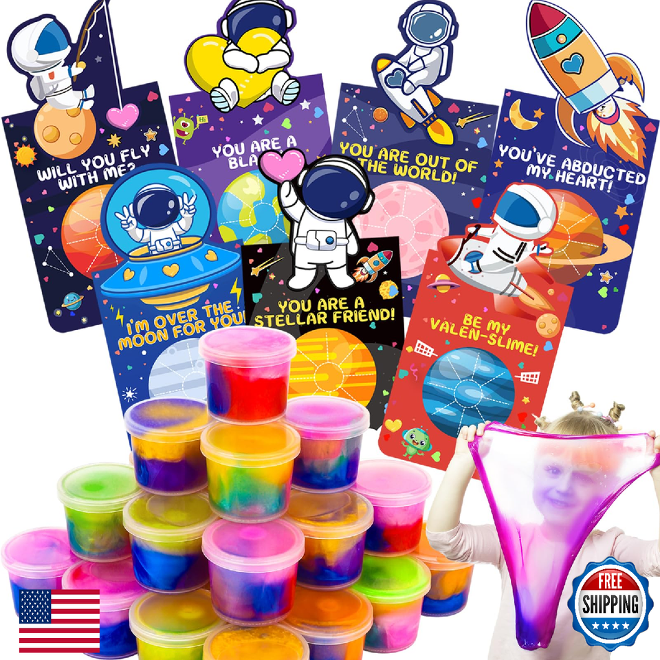 28 Pack Valentines Day Gift for Kids, Galaxy Slime Stress Relief Fidget Toy with