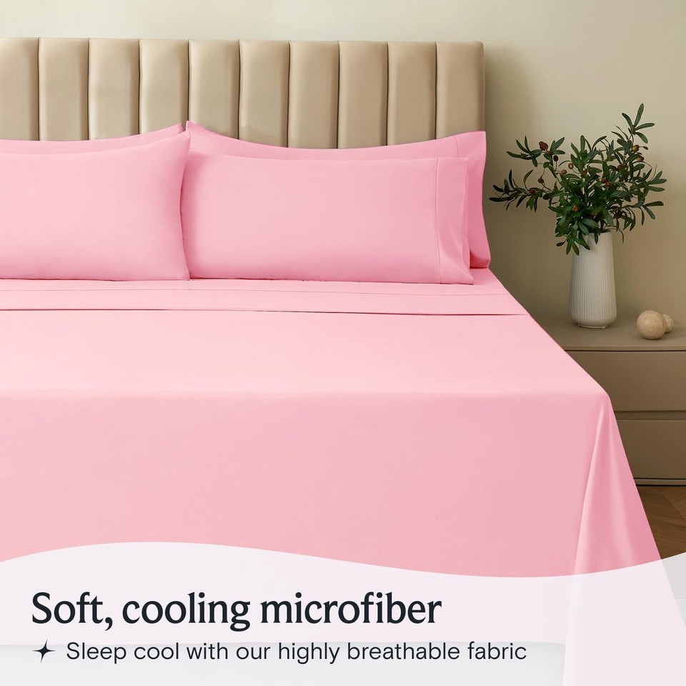 LuxClub 4 PC Sheet Set Bed Sheets Deep Pockets 16" Eco Friendly Wrinkle Free Coo
