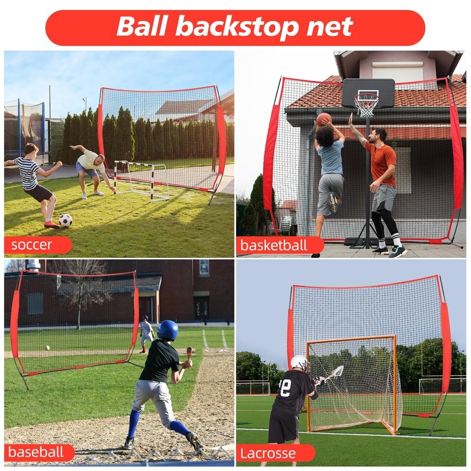 7x7ft /10x16ft /10x20ft Portable Backstop Net with Carry Bag and 4 Ground Nails.