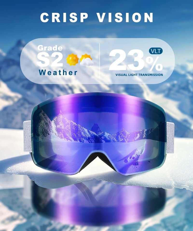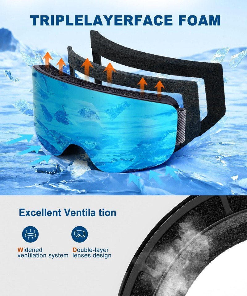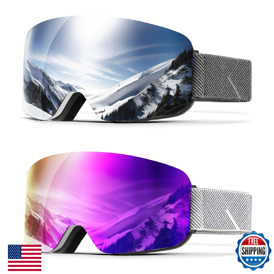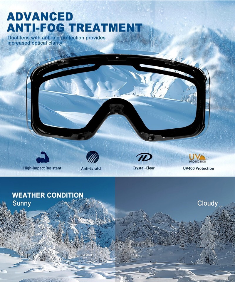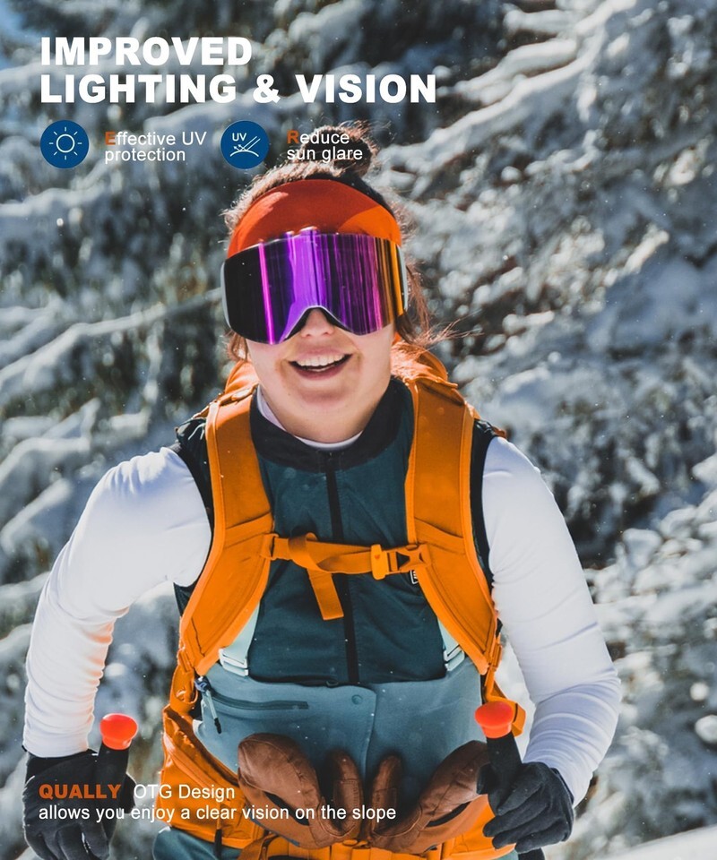 QALLY Ski Goggles Men Women, Anti-Fog Snowboard Goggles, 100% UV Protection
