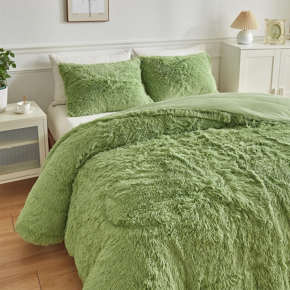 Wajade Faux Fur Plush Sage Green Comforter and similar items