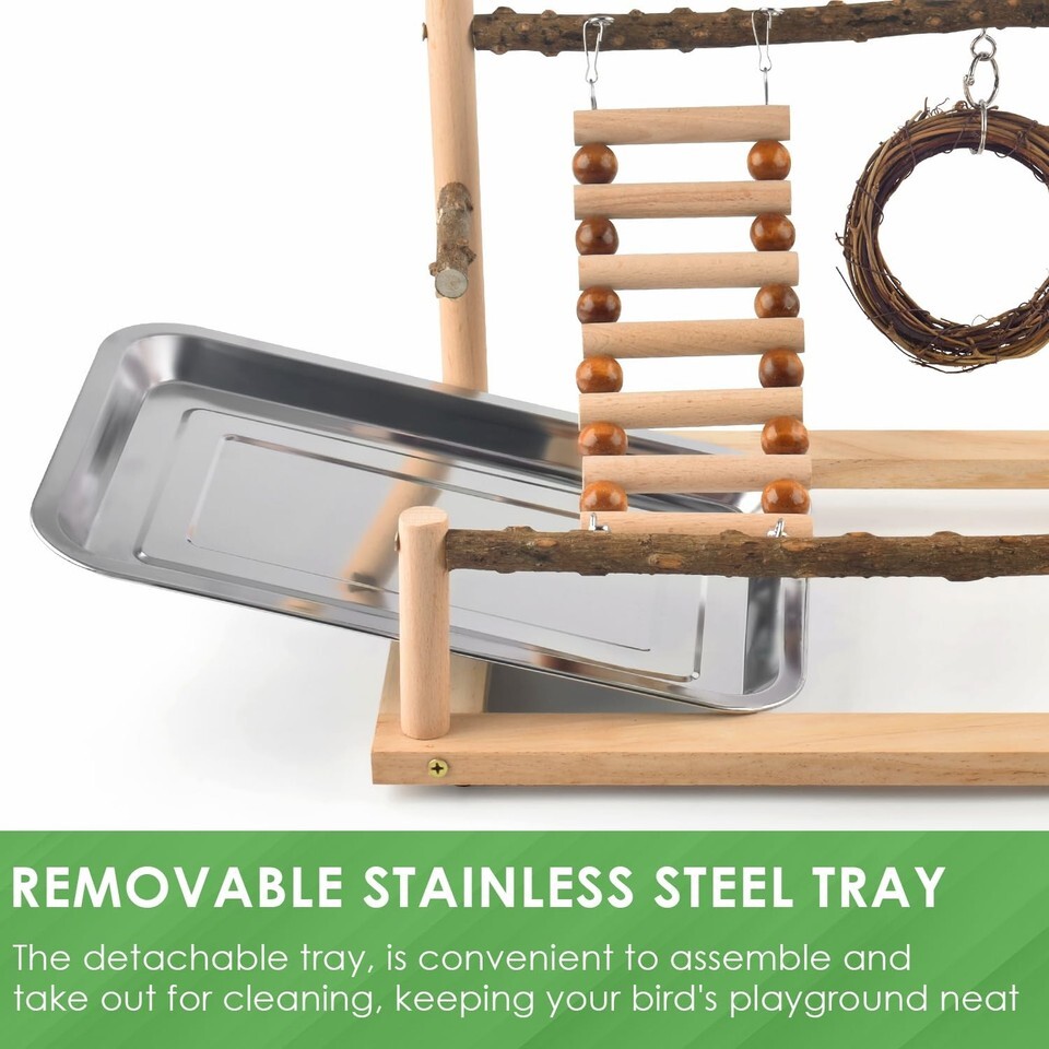 KATUMO Bird Playground: Natural Wood Perches, Ladder, Swing, Feeder for Parakeet
