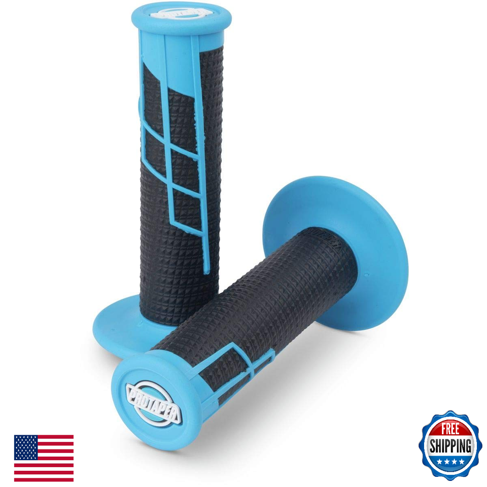 Pro Taper Clamp-On Grips 1/2 Waffle Neon Blue/Black Motocross/Dual Sport