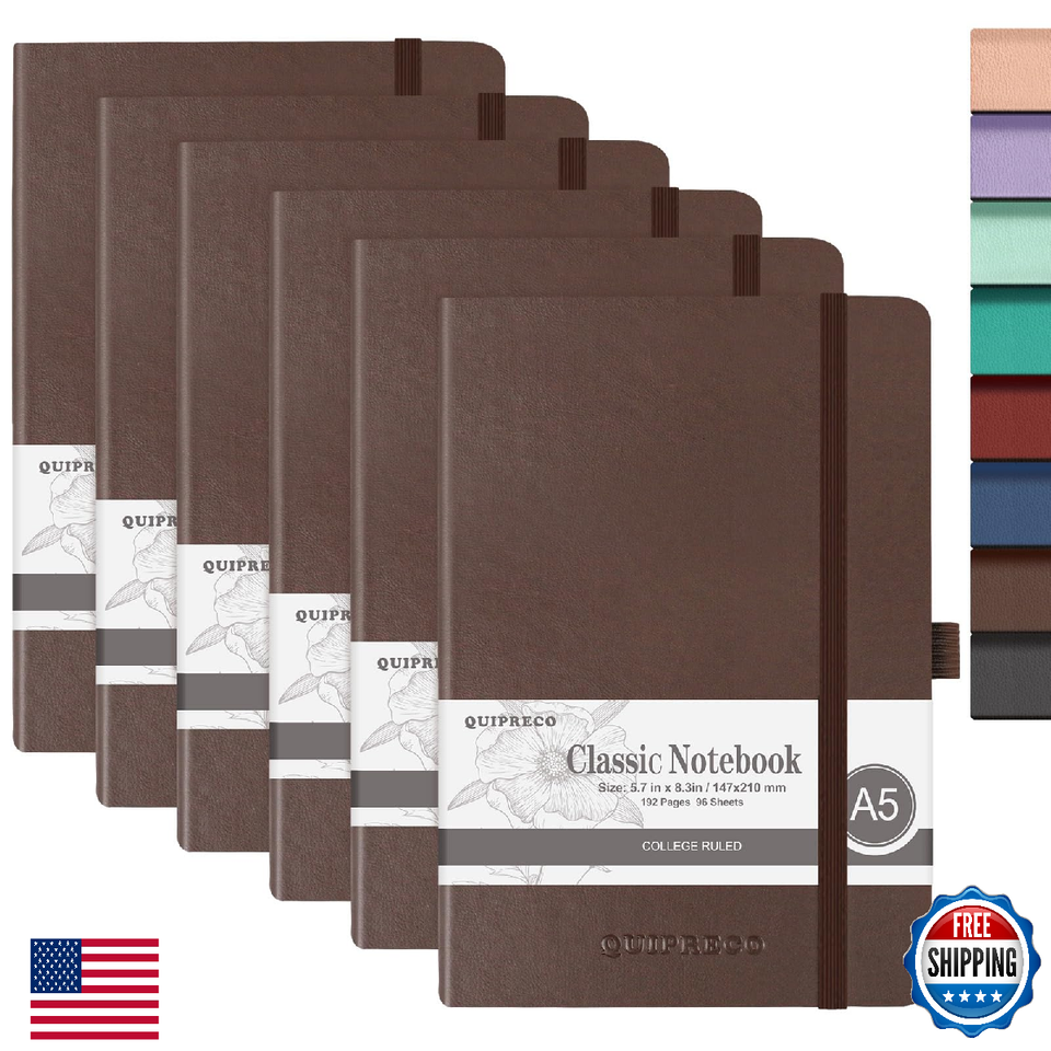 quipreco 6Pack Hardcover Lined Journal Notebook, A5 192 Pages 100Gsm Paper Colle