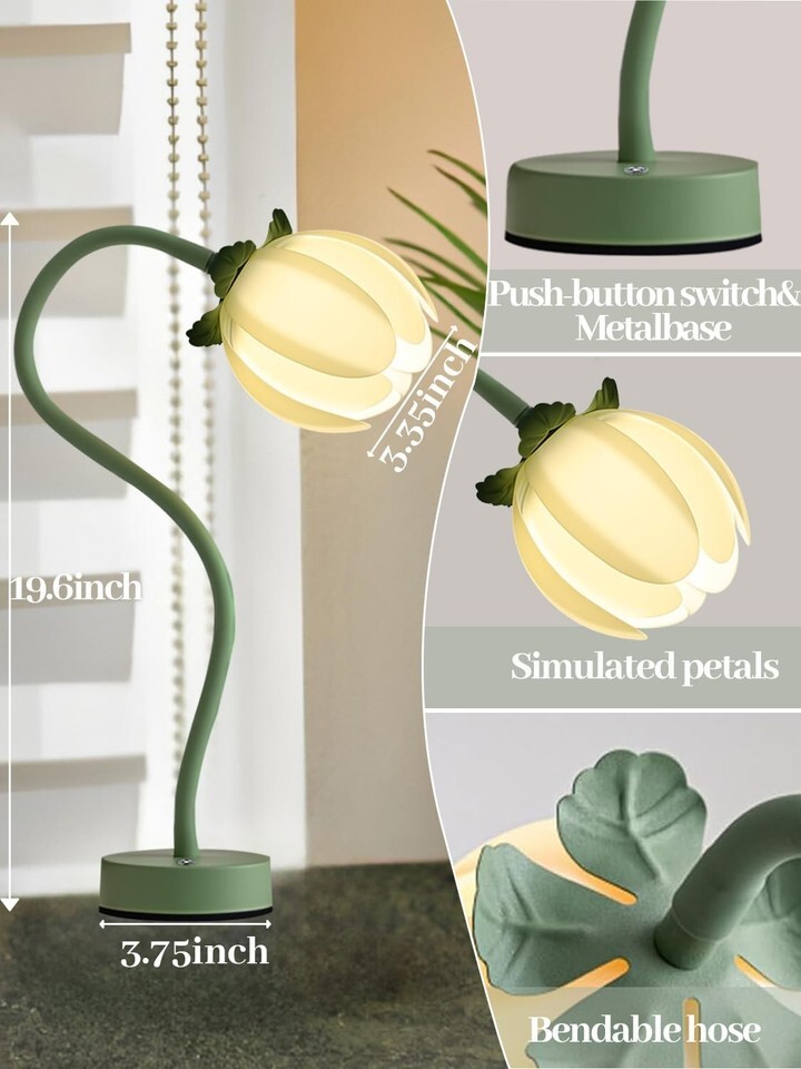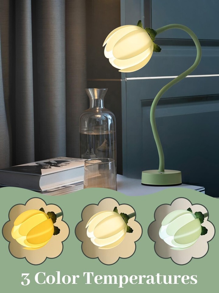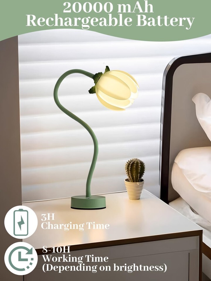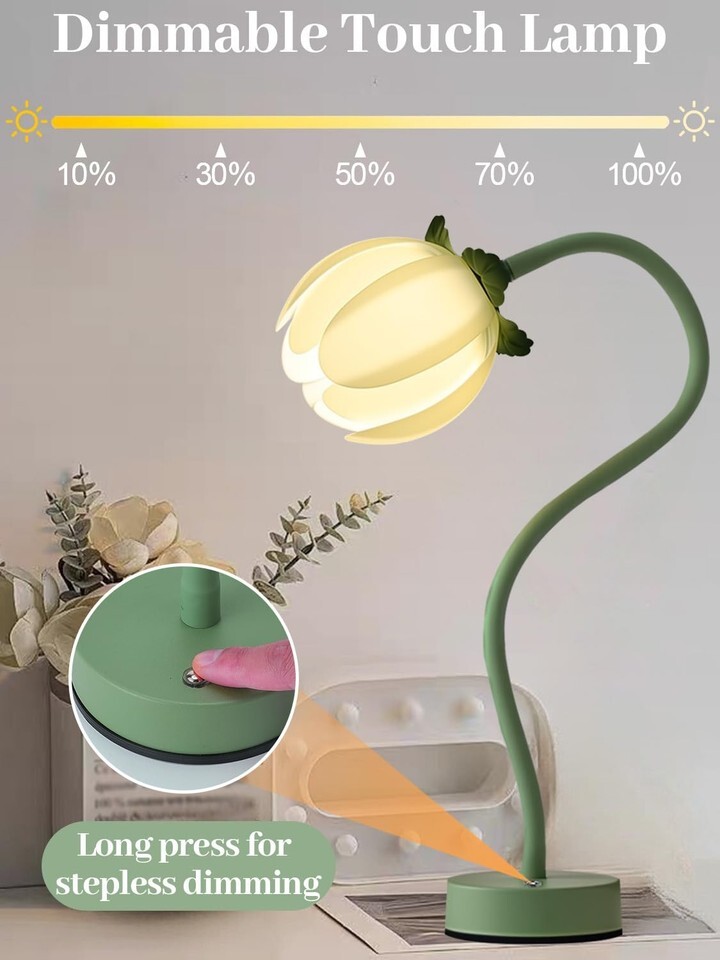 ONXE Tulip Desk Lamp - Rechargeable 3 Color Dimmable Flower Night Light, 360° Be