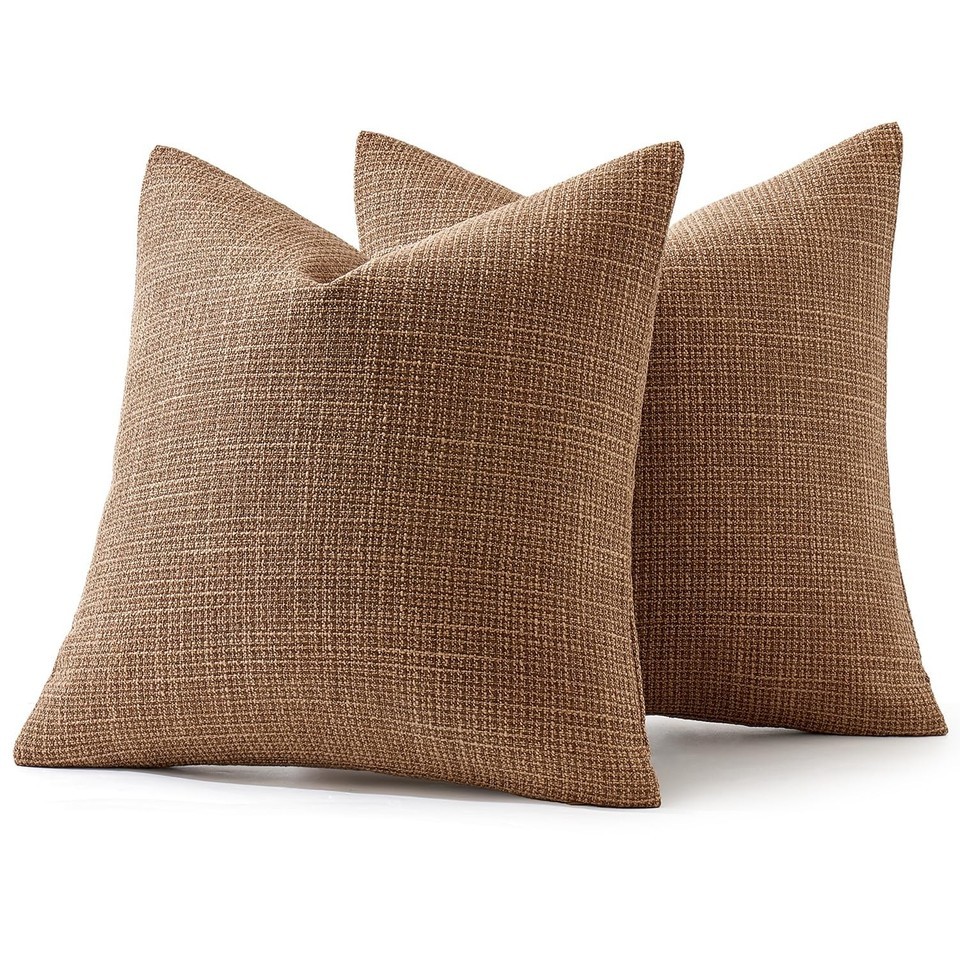 MIULEE 24x24 Euro Sham Burlap Linen Pillow Covers Set of 2 Brown Washed