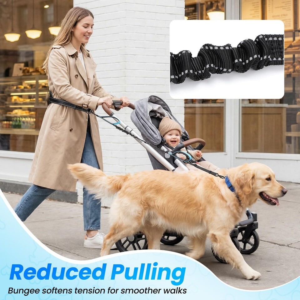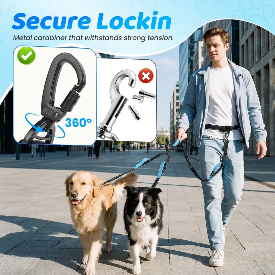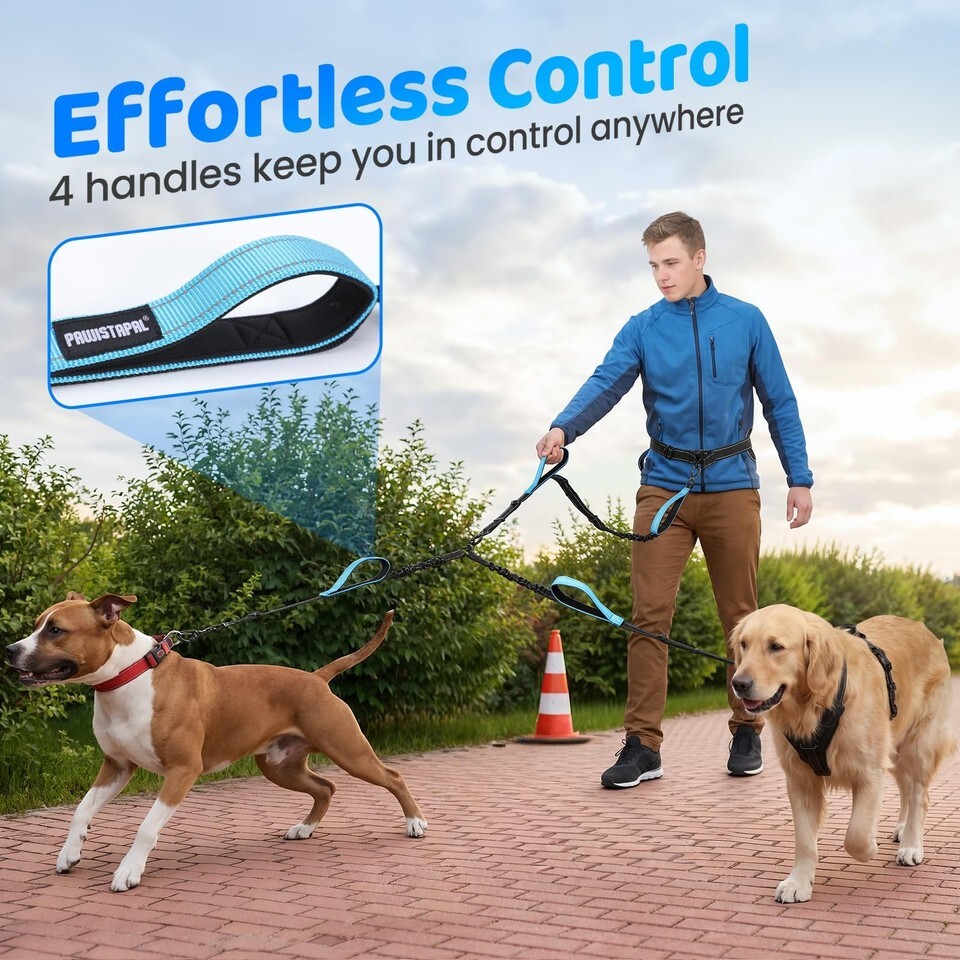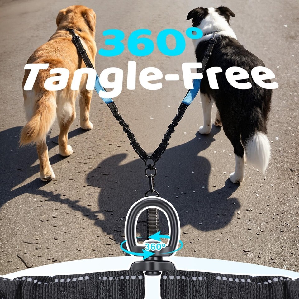 Hands Free Leash for 2 Large Dogs No Tangle Waist Walking Bungee Leash 6-8 FT Du