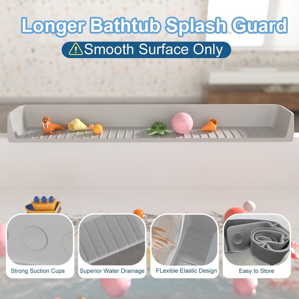 Aqqwxyq Longer Bathtub Splash Guard for Tub Kids, Bathtub Water Guards Play Shel