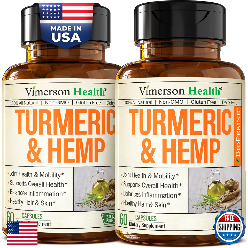 Turmeric Curcumin w/ Hemp & Lemon Balm for Joint, Mood, Sleep Support - 2 Pack